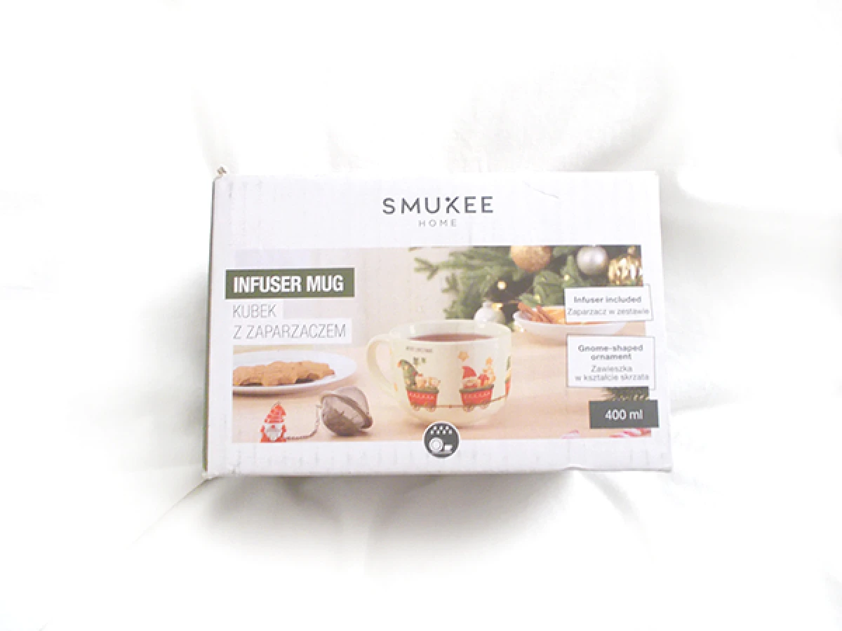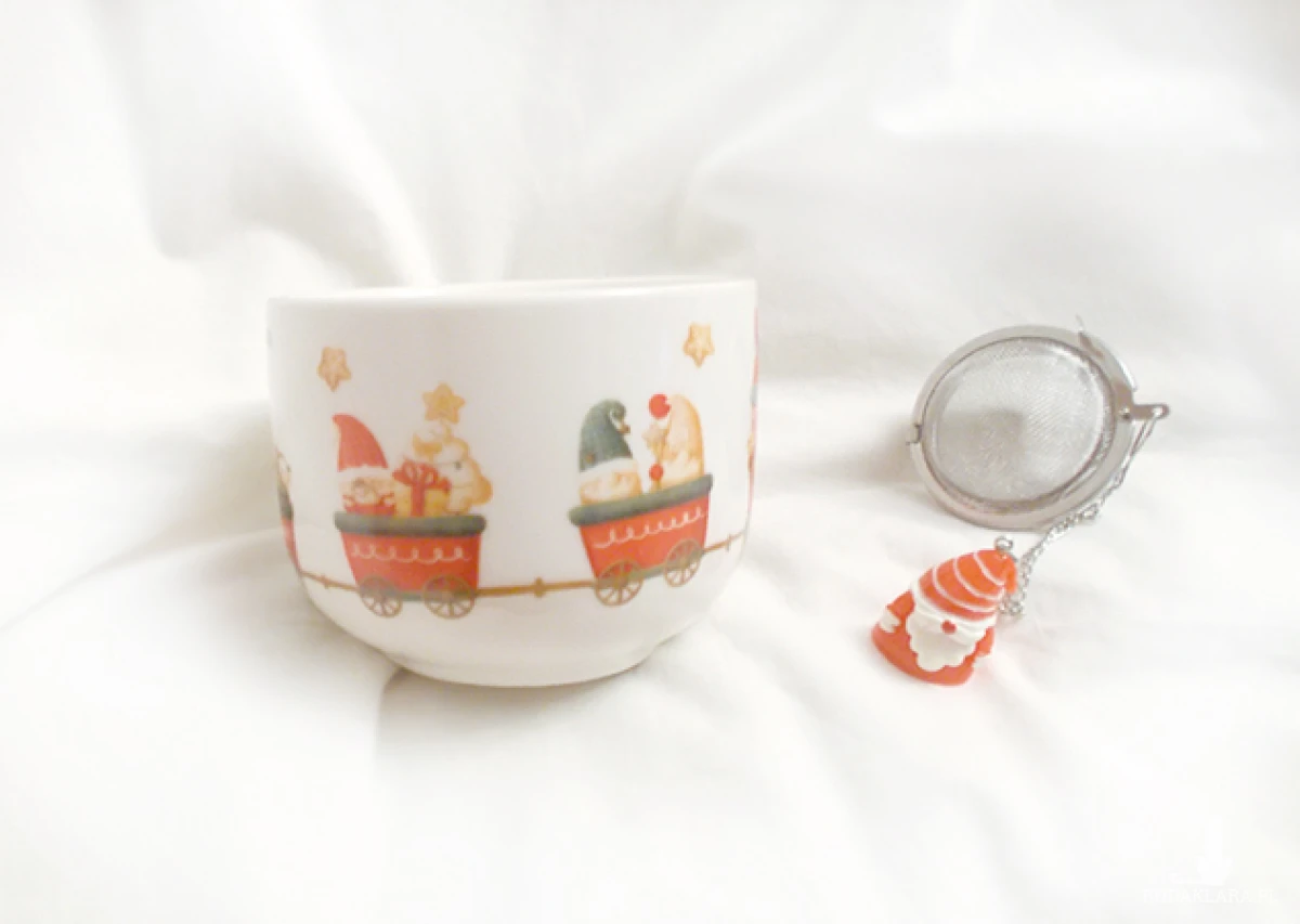 Nowy, ceramiczny kubek w bożonarodzeniowe wzory, kubek jest dość duży - pojemność około 400 ml, dołączony zaparzacz do herbaty z Mikołajem, marka "Smukee". Naczynie nadaje się do mycia w zmywarce
