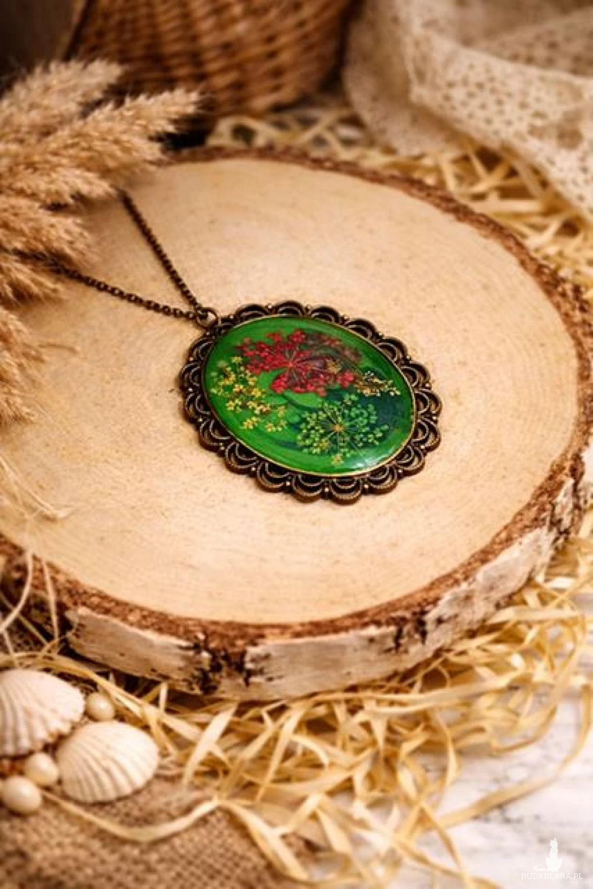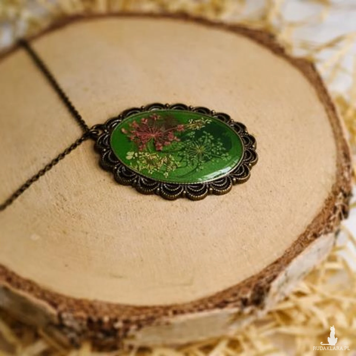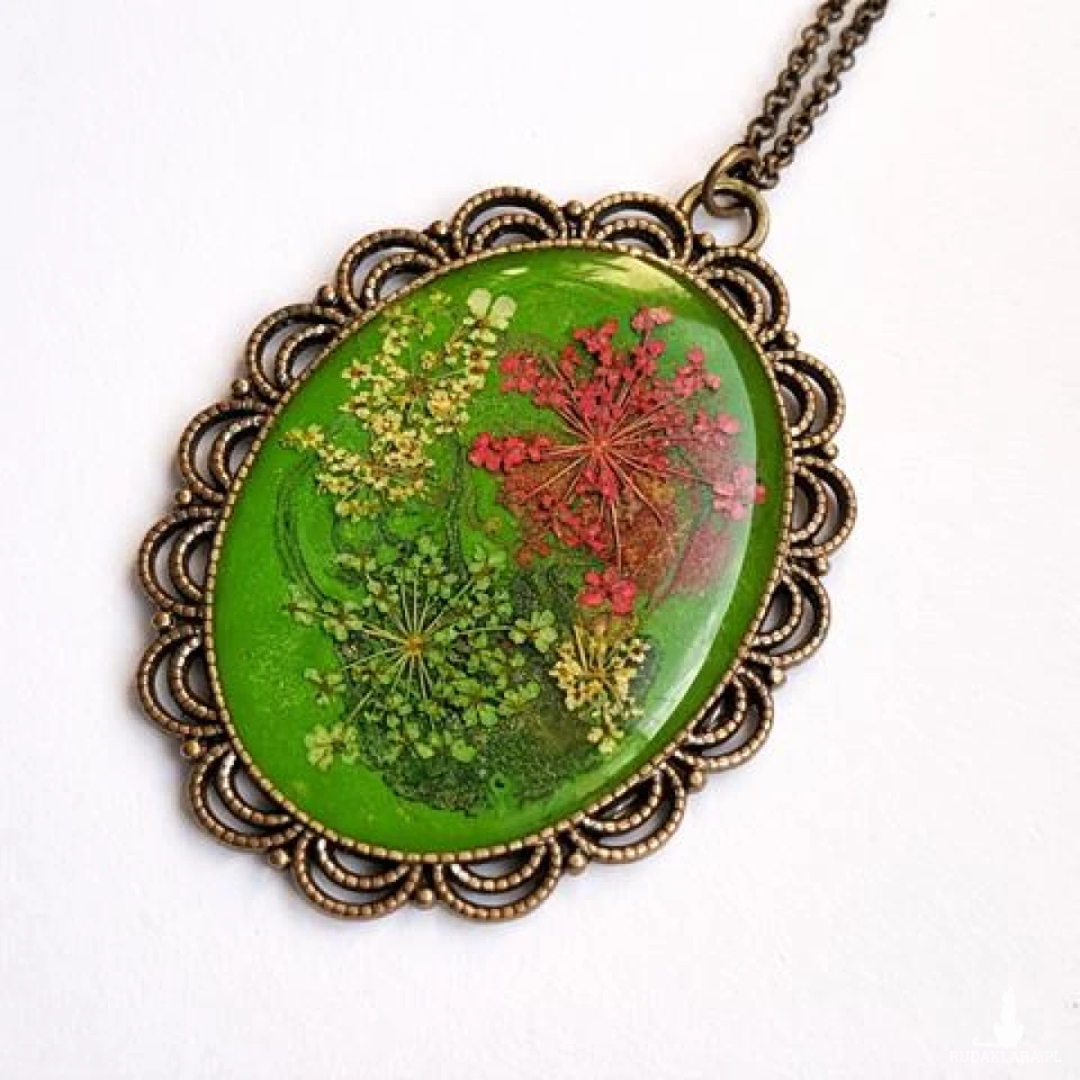Medalion z zatopionymi kwiatami to subtelny symbol natury, kobiecości i delikatności. Idealny wybór dla osób ceniących biżuterię handmade i unikatowe dodatki.