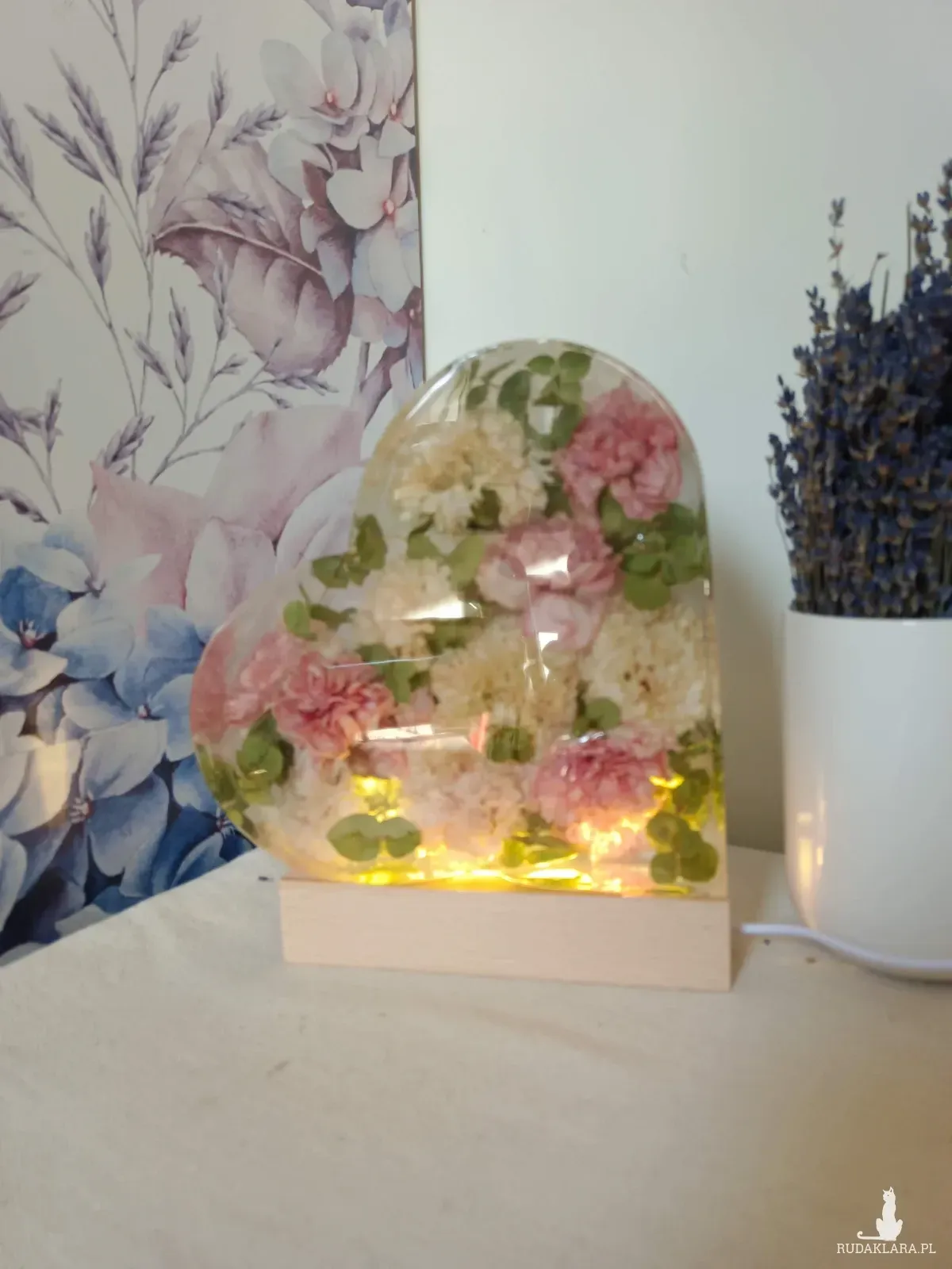 - Lampka w kształcie serca - wykonywana w głębokiej formie z kwiatów