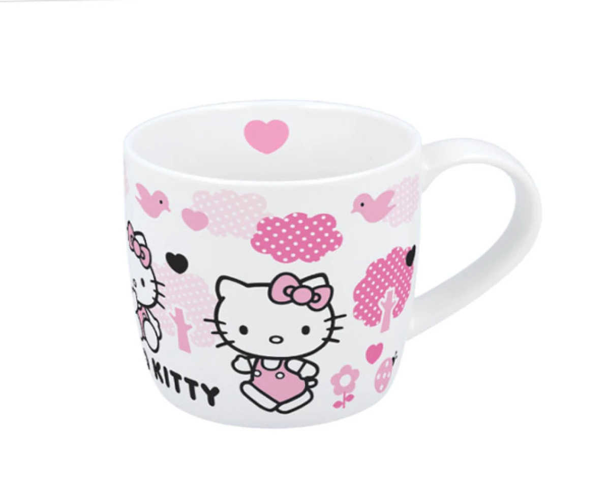 Nowy, oryginalny kubek z wzorami "Hello Kitty", pojemność ok. 250 ml. Nadaje się do zmywarek i mikrofalówek. Ceramiczny kubek dla dziewczynki lub nastolatki.