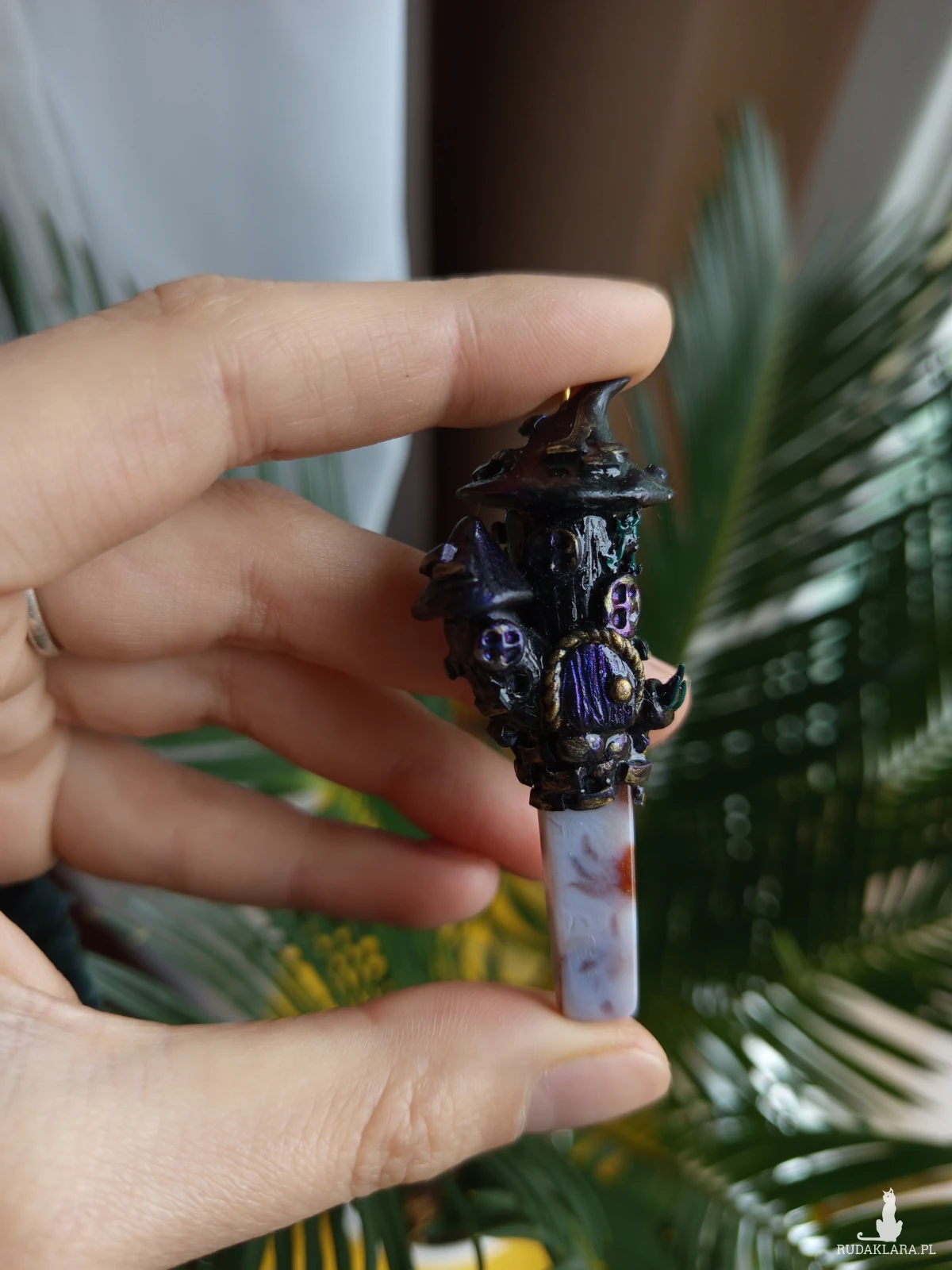 🖤🔮 Naszyjnik „Wieża Wiedźmy” z agatem – ręcznie wykonany amulet 🔮🖤
