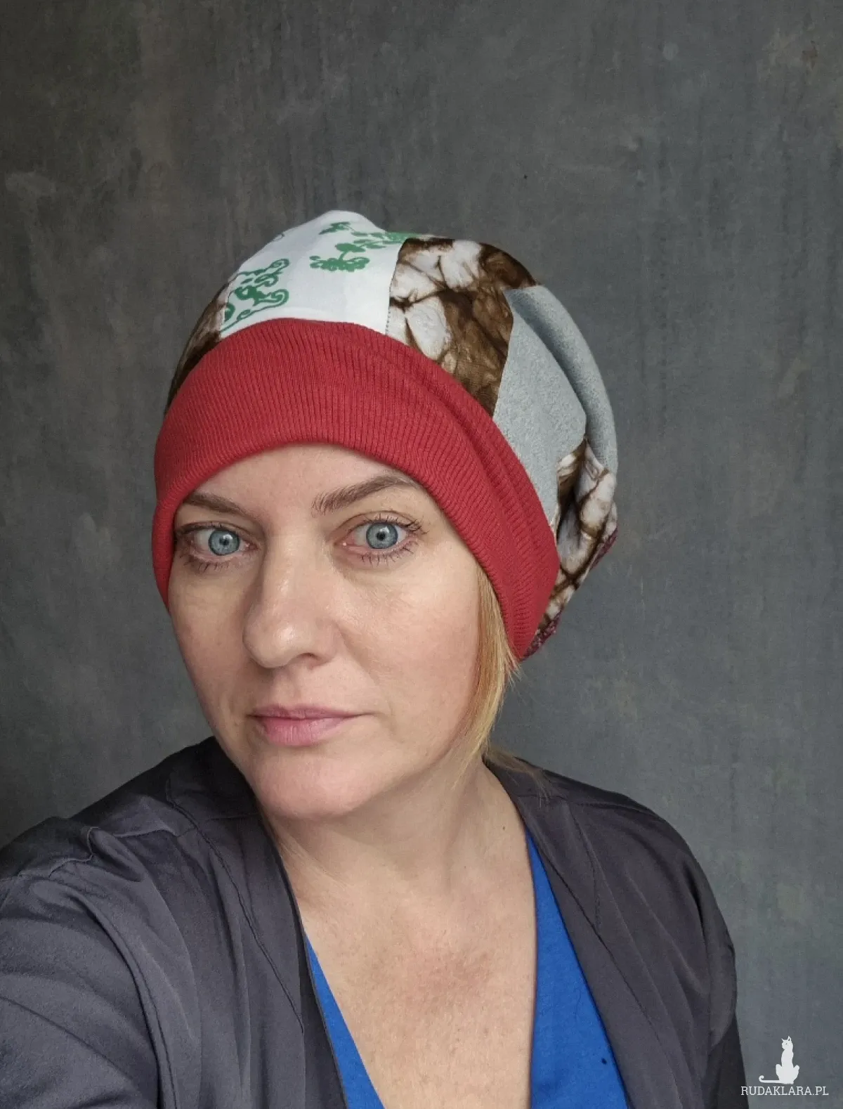 Czapka smerfetka codzienna patchwork