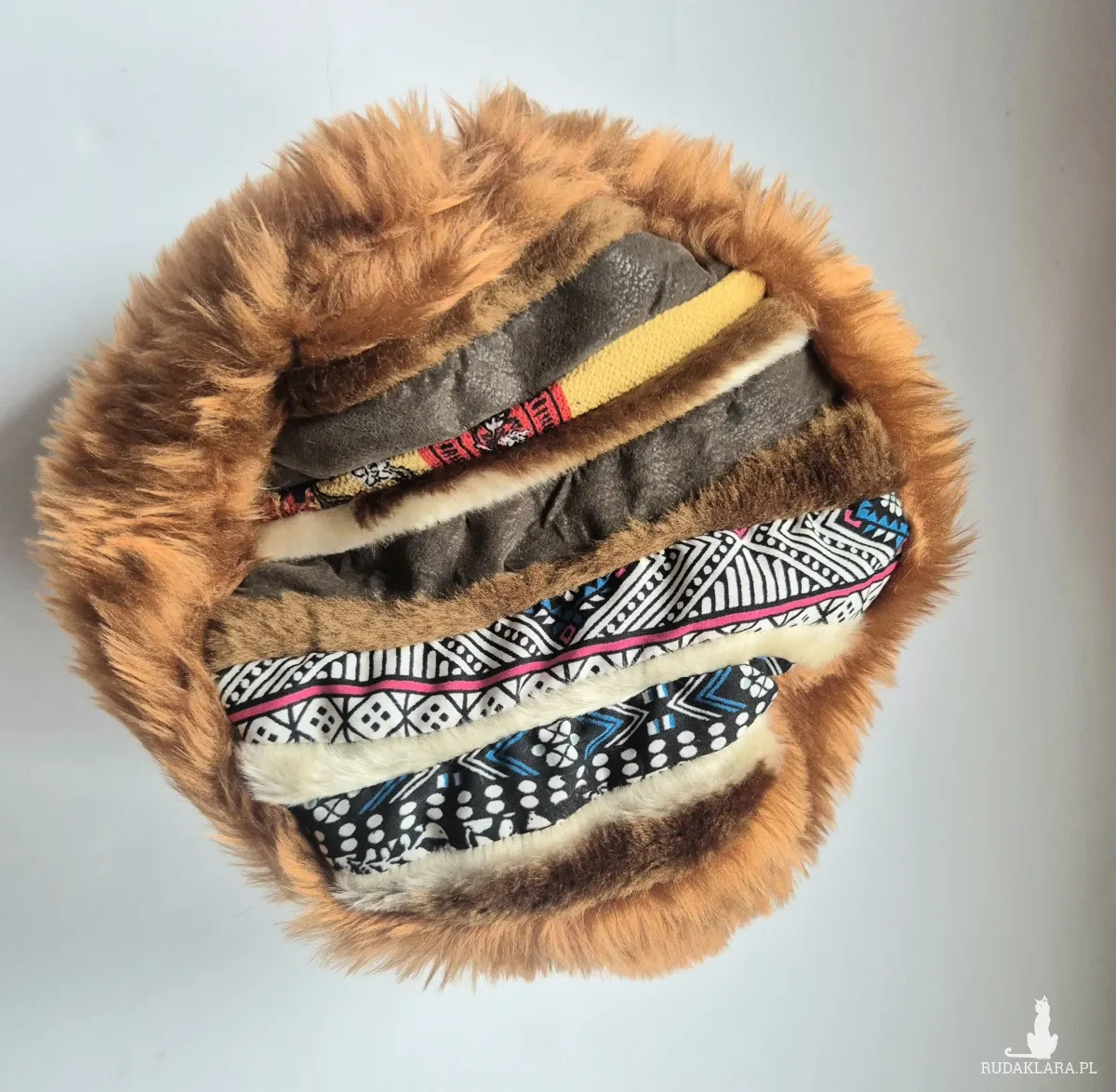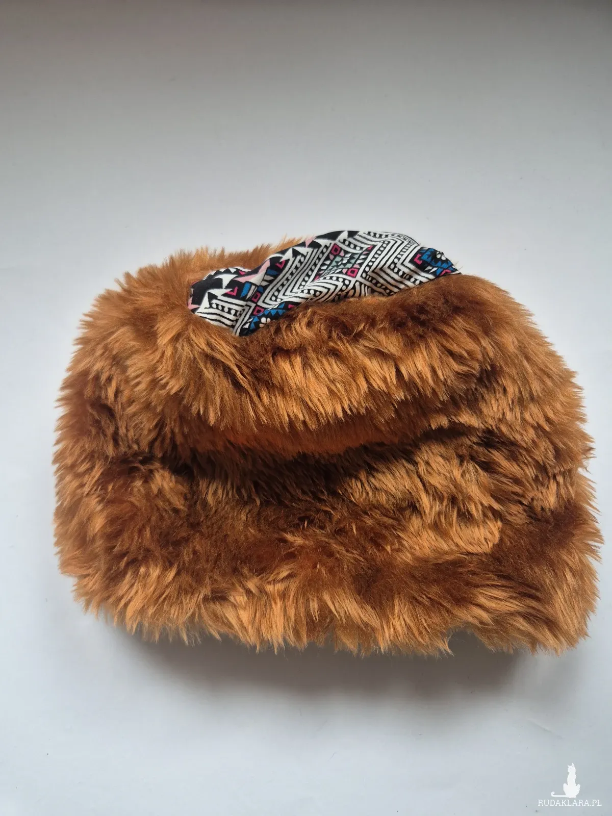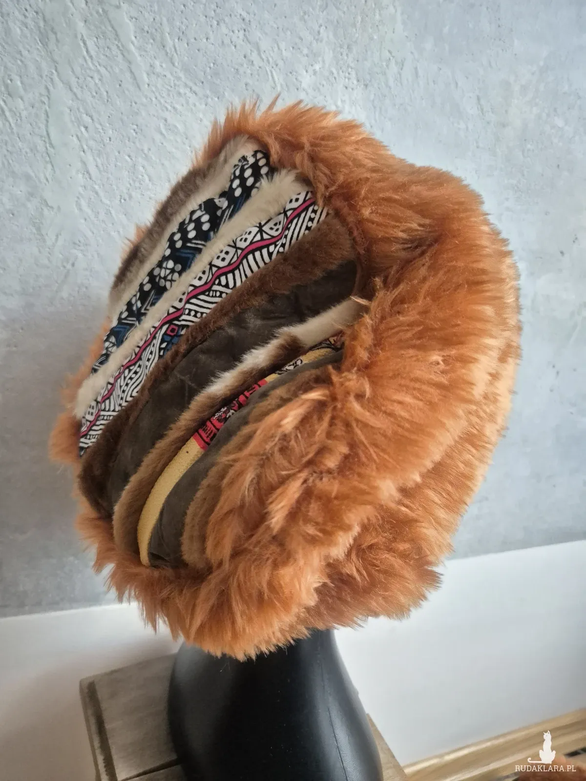 Futrzana czapka ruda   gora folkowa na podszewce rozmiar uniwersalny Box a1