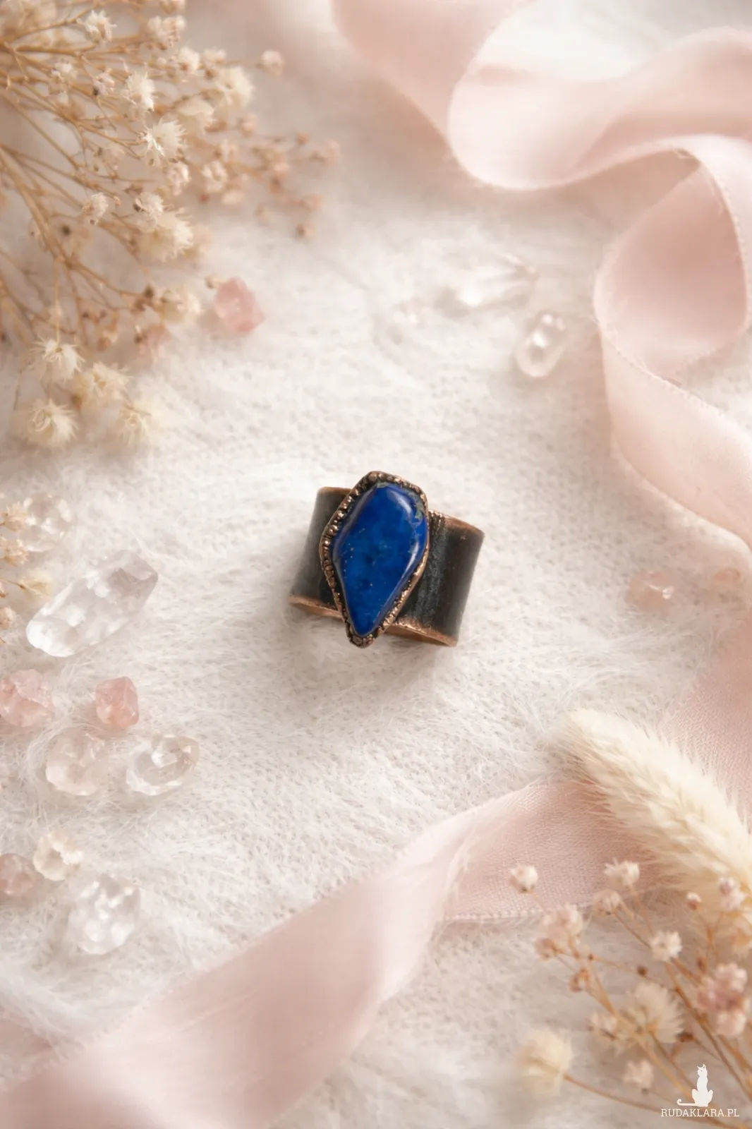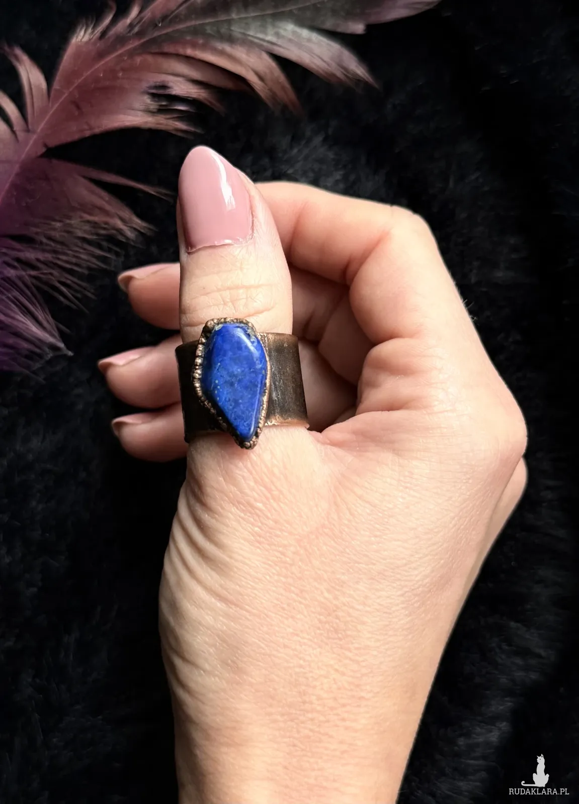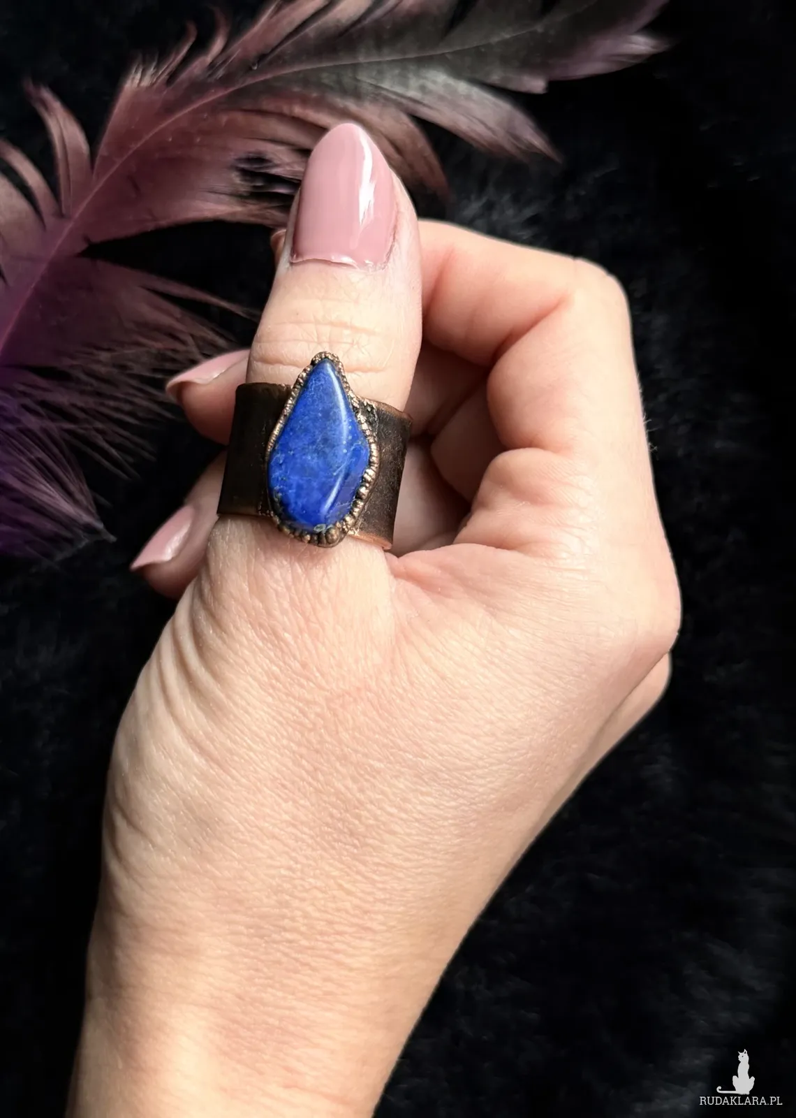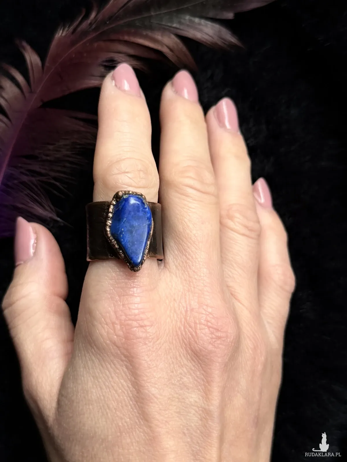 Miedziany pierścionek z sodalitem, rozmiar 23 (obwód palca 63mm)