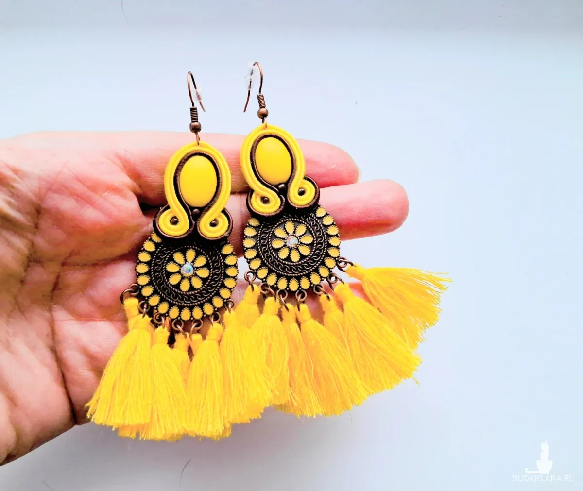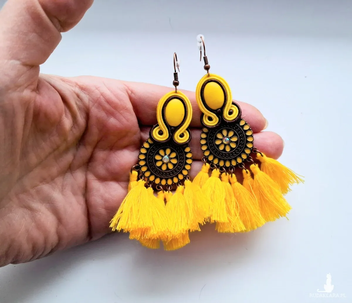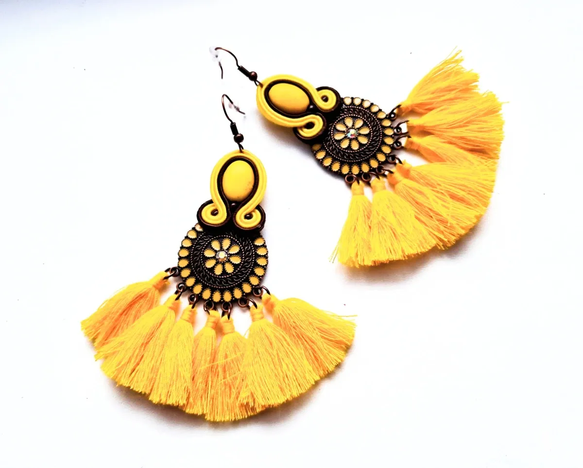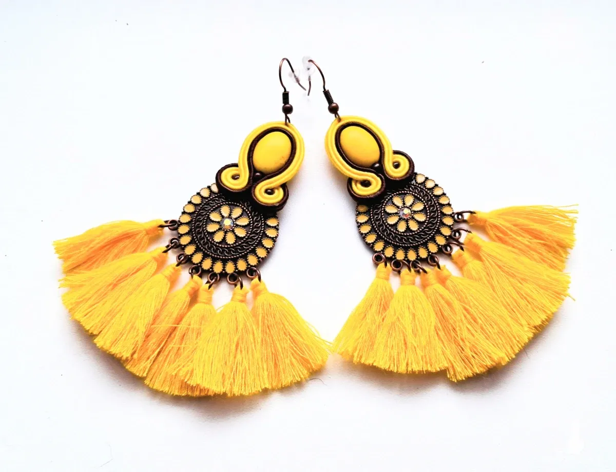 Kolczyki sutaszowe ręcznie haftowane.