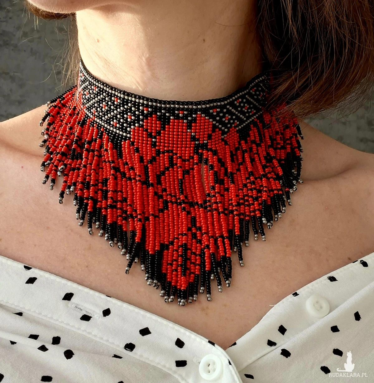 Ten wyjątkowy, ręcznie wykonany naszyjnik typu choker to połączenie tradycyjnego rzemiosła z nowoczesnym stylem. Wykonany z dbałością o każdy szczegół z wysokiej jakości koralików.