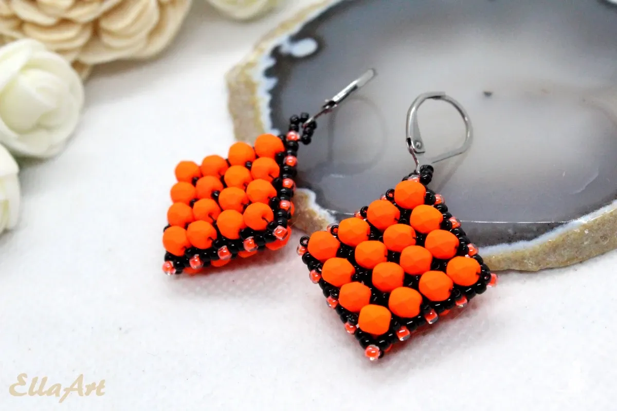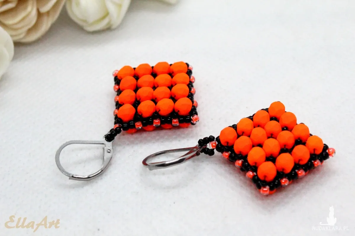 - kolczyki uszyte ze szklanych koralików japońskiej firmy Toho oraz