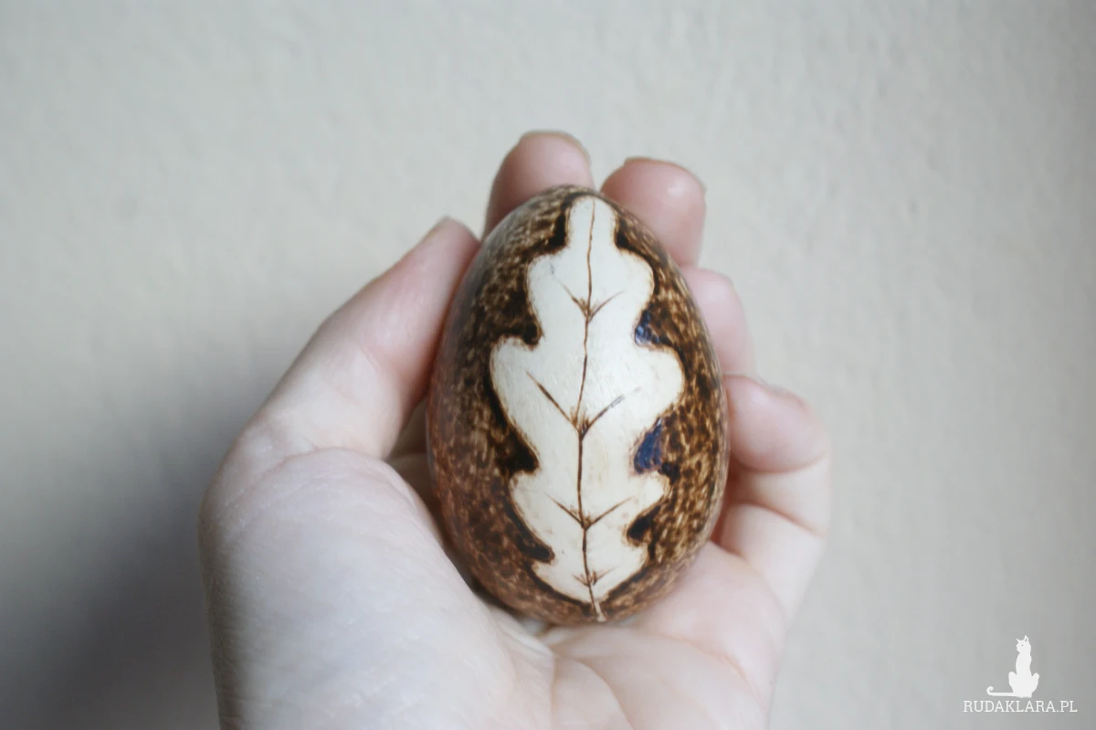 Drewniana pisanka/dekoracja całoroczna. * ręcznie wypalana w technice pirografii * zaimpregnowana nietoksycznym lakierem * bardzo trwała * gotowa do wysyłki Wymiary: wysokość - ok. 6 cm - wielkość jajka kurzego.