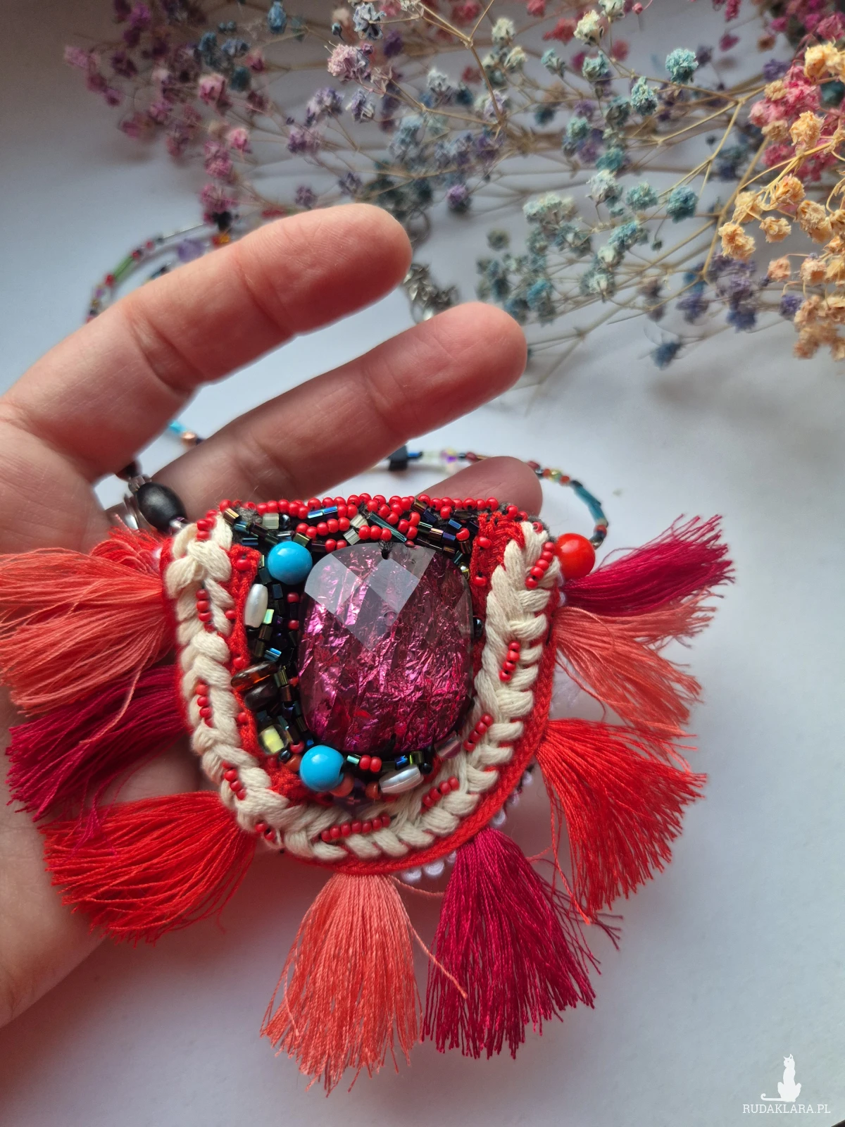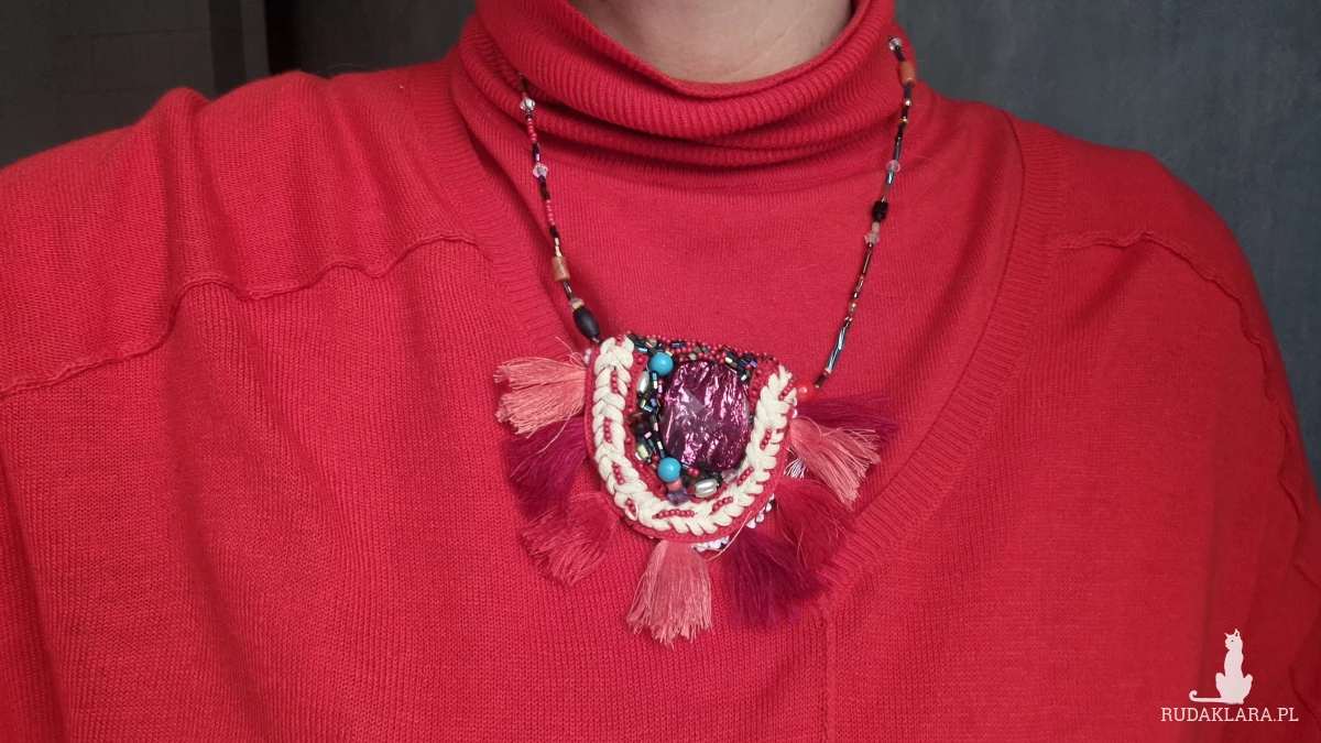 Naszyjnik koralikowy Boho z frędzlami polecam pojedyncza sztuka box x1