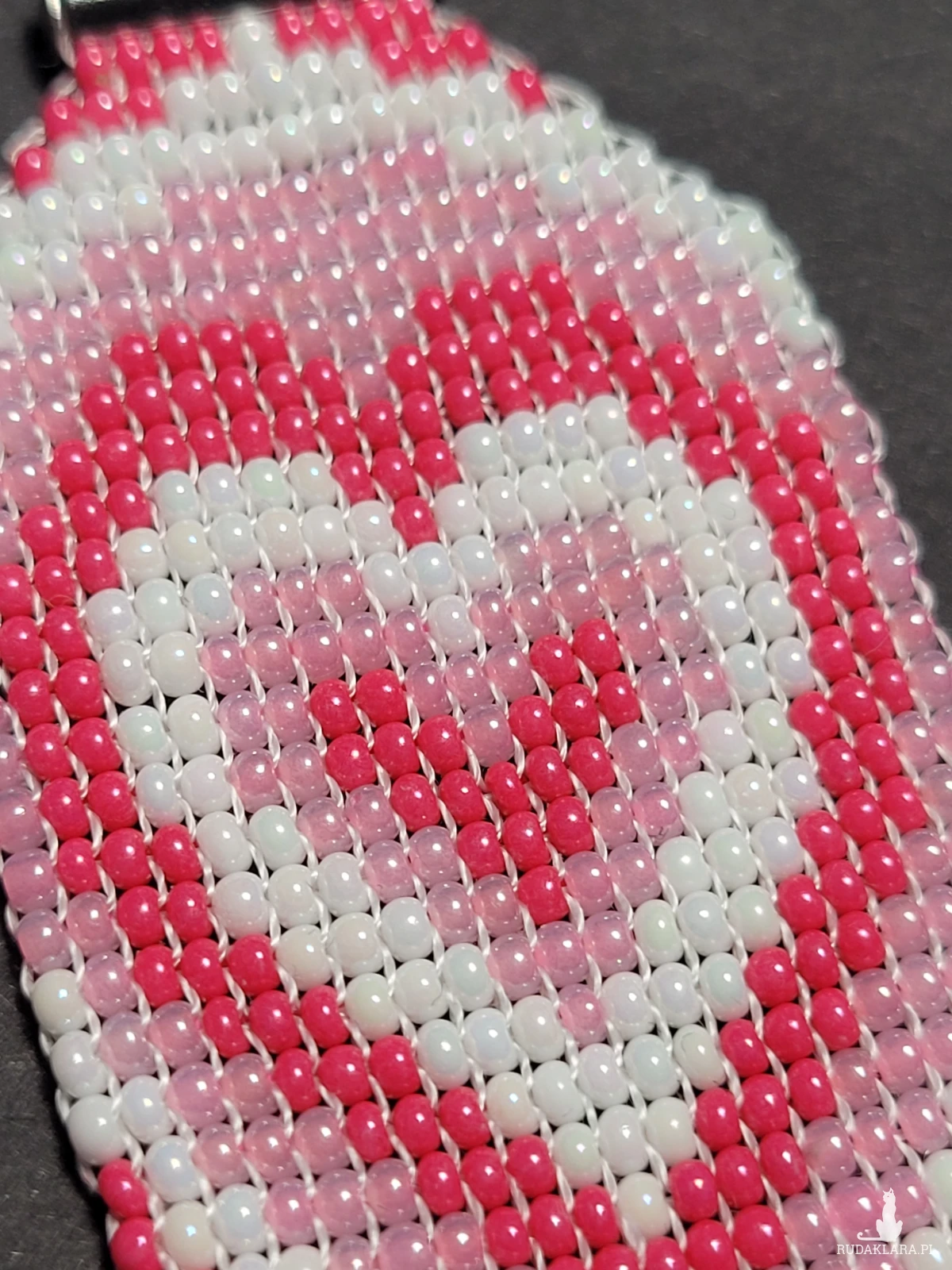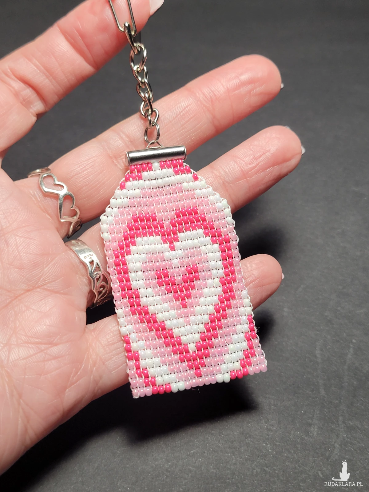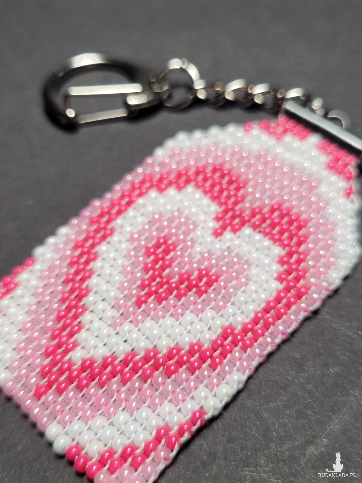 Brelok Serce wytkany własnoręcznie z czeskich koralików Preciosa.