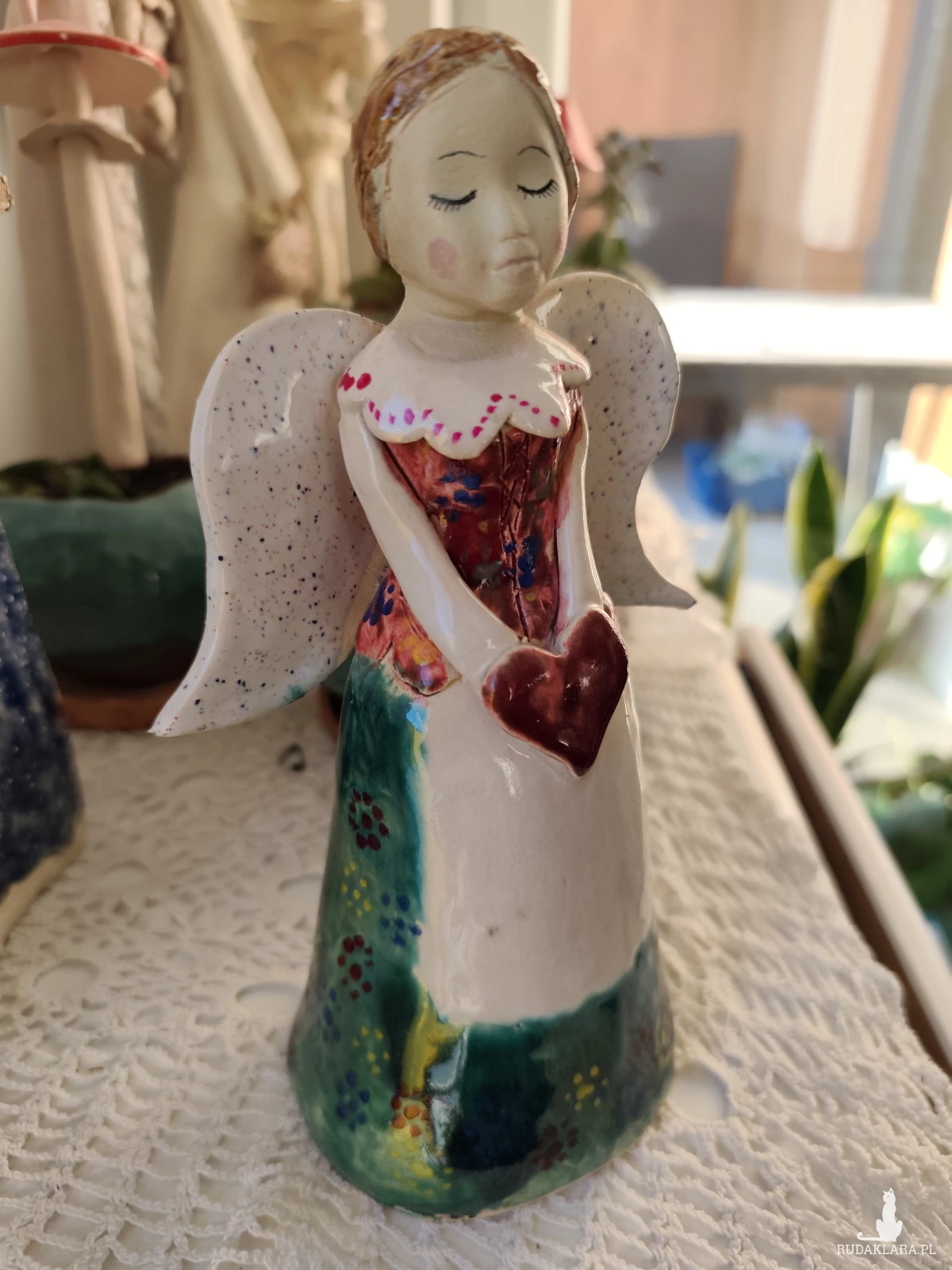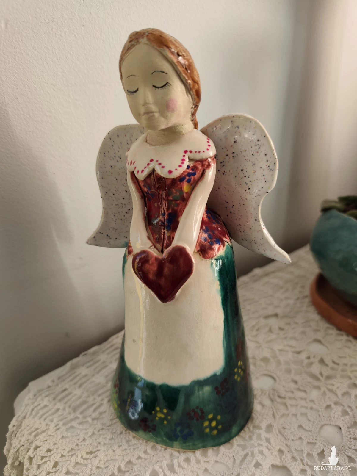 Anioł ceramiczny, wykonany ręcznie, szkliwiony i dwukrotnie wypalany w piecu ceramicznym na wysoką temperaturę. Polecam