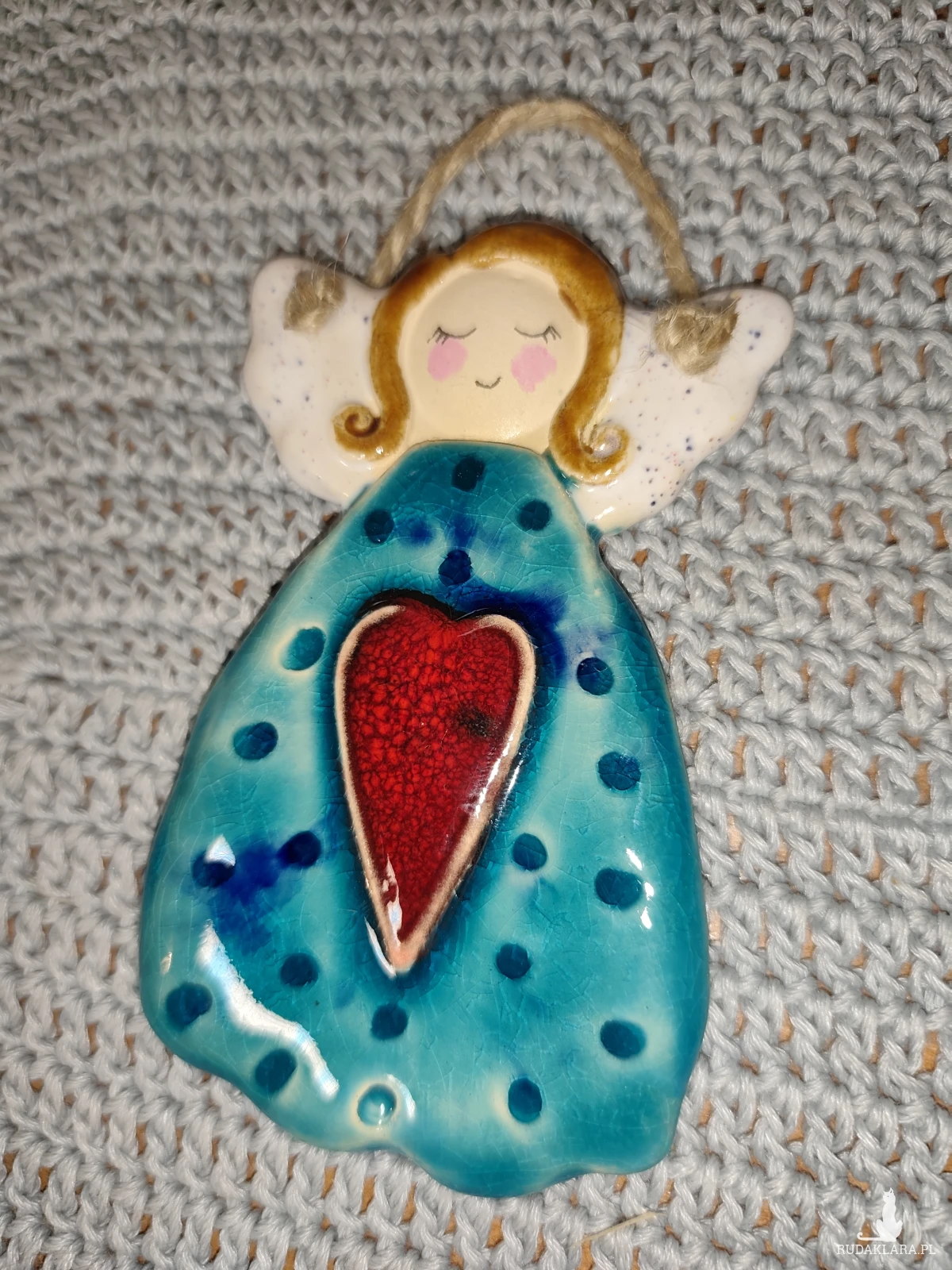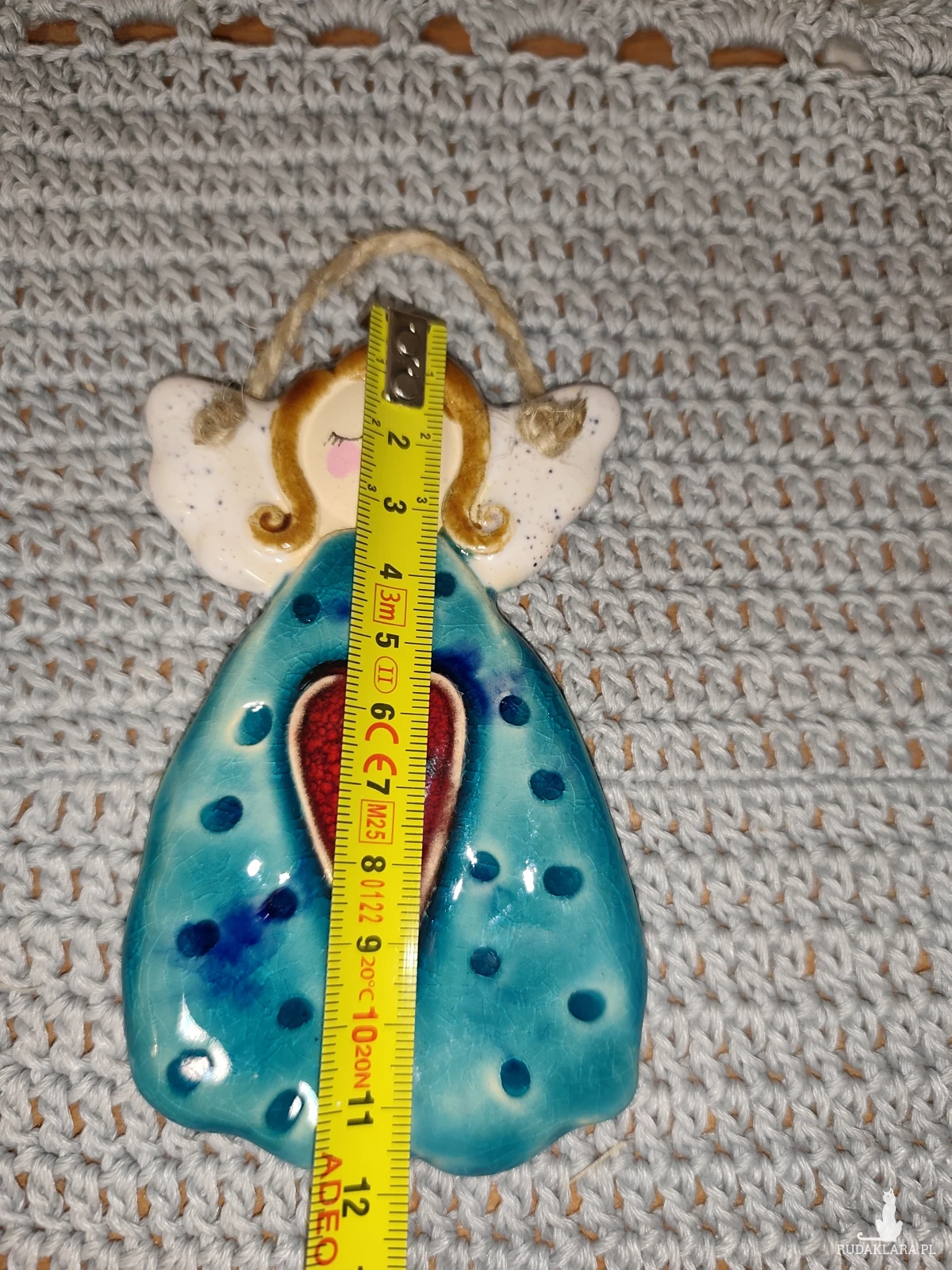 Aniołek ceramiczny wykonany z jasnej gliny, szkliwiony i dwukrotnie wypalany w piecu ceramicznym. polecam
