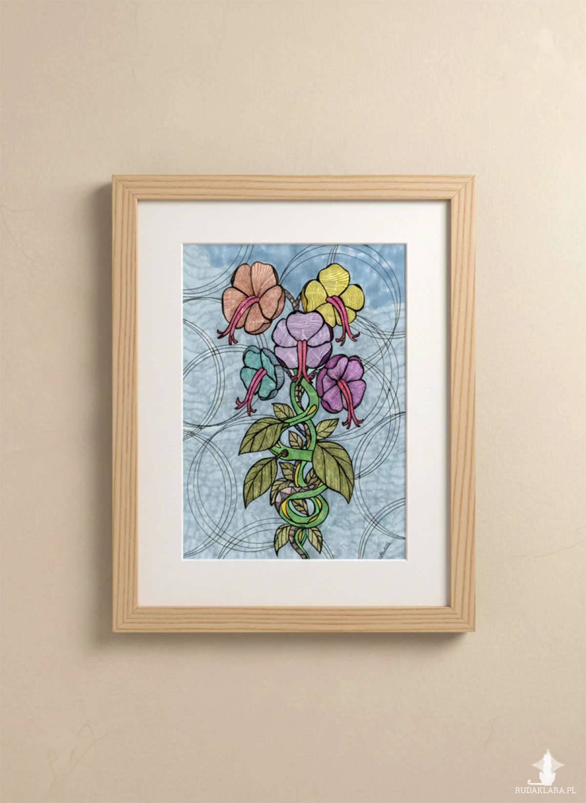 Najlepiej zaprezentuje się w prostej ramie, która nie odciągnie uwagi od misternego splotu „żmijowej” łodygi.