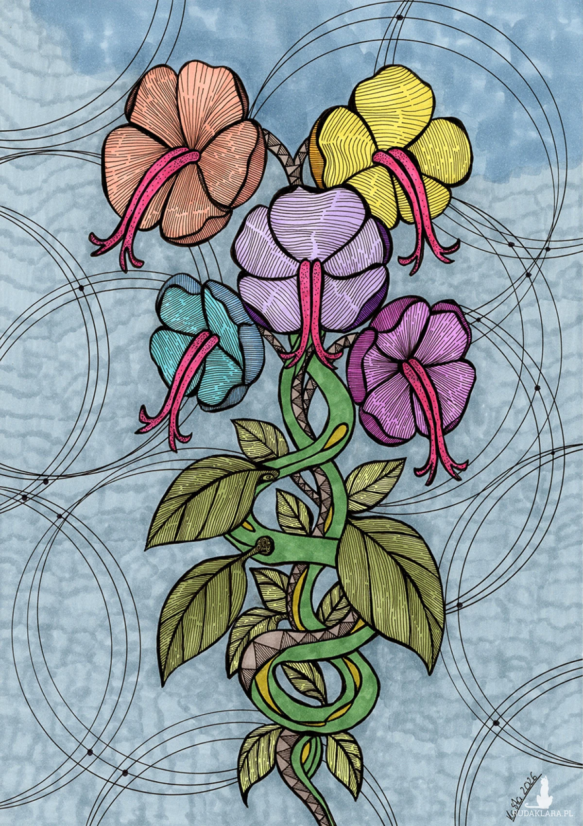 Styl: Doodle art, Zentangle, surrealizm botaniczny.