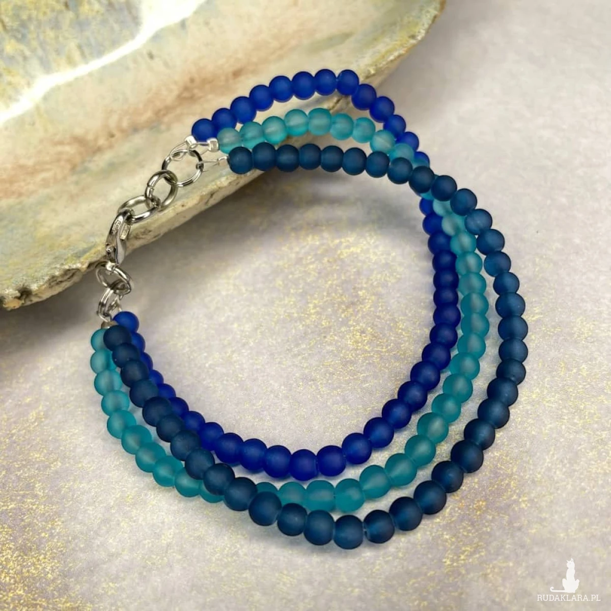 Bransoletka z matowych koralików to efektowny dodatek, który ożywi stylizację wyrazistą paletą barw. Każdy sznur szklanych koralików ma inny odcień, dzięki czemu całość nabiera głębi i wielowymiarowości. Matowe wykończenie dodaje jej delikatności, a srebrzyste elementy wprowadzają nowoczesny charakter. To dodatek, który wnosi lekkość i świeżość niezależnie od sezonu, idealny na co dzień i na bardziej swobodne okazje. Całość uzupełnia praktyczny karabińczyk, gwarantujący komfortowe użytkowanie.