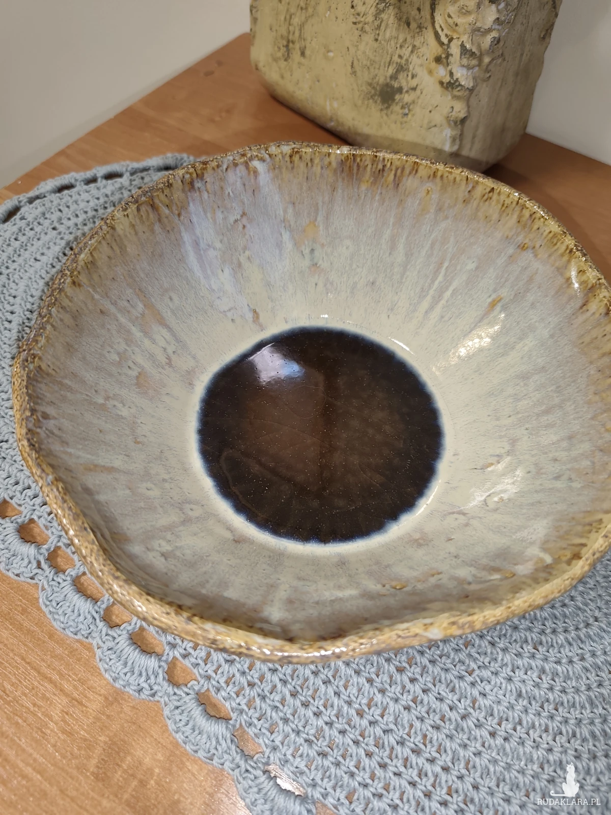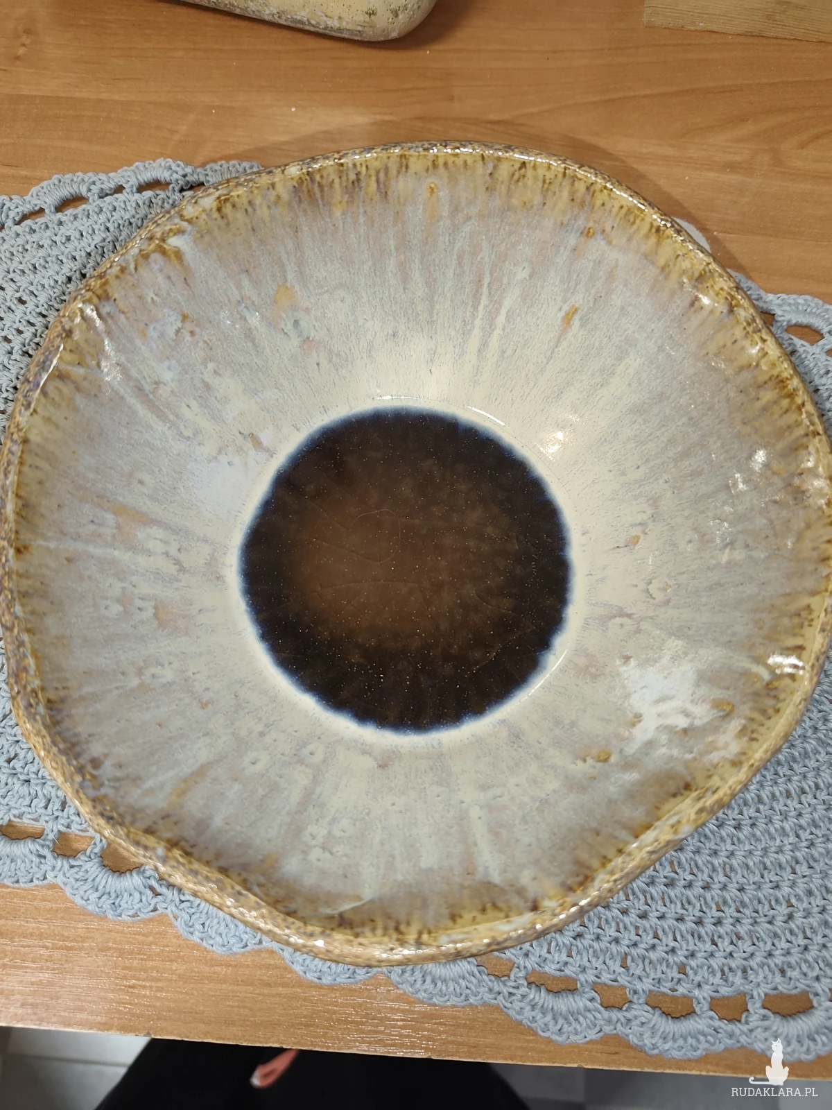 Misa ceramiczna ręcznie wykonana, szkliwiona w dwukrotnie wypalana w piecu ceramicznym na wysoką temperaturę. Można w niej podawać sałatkę, szkliwa przeznaczone do kontaktu z żywnością Średnica około 22cm.