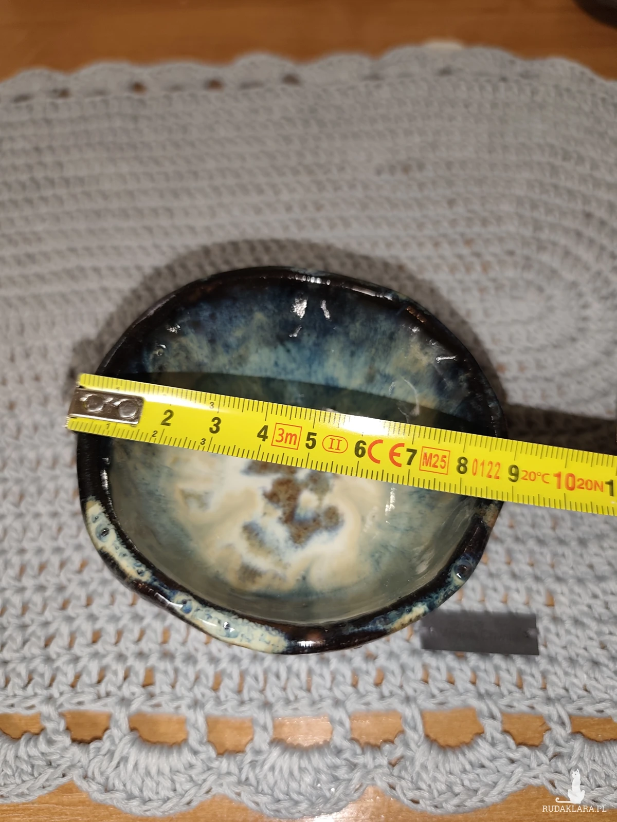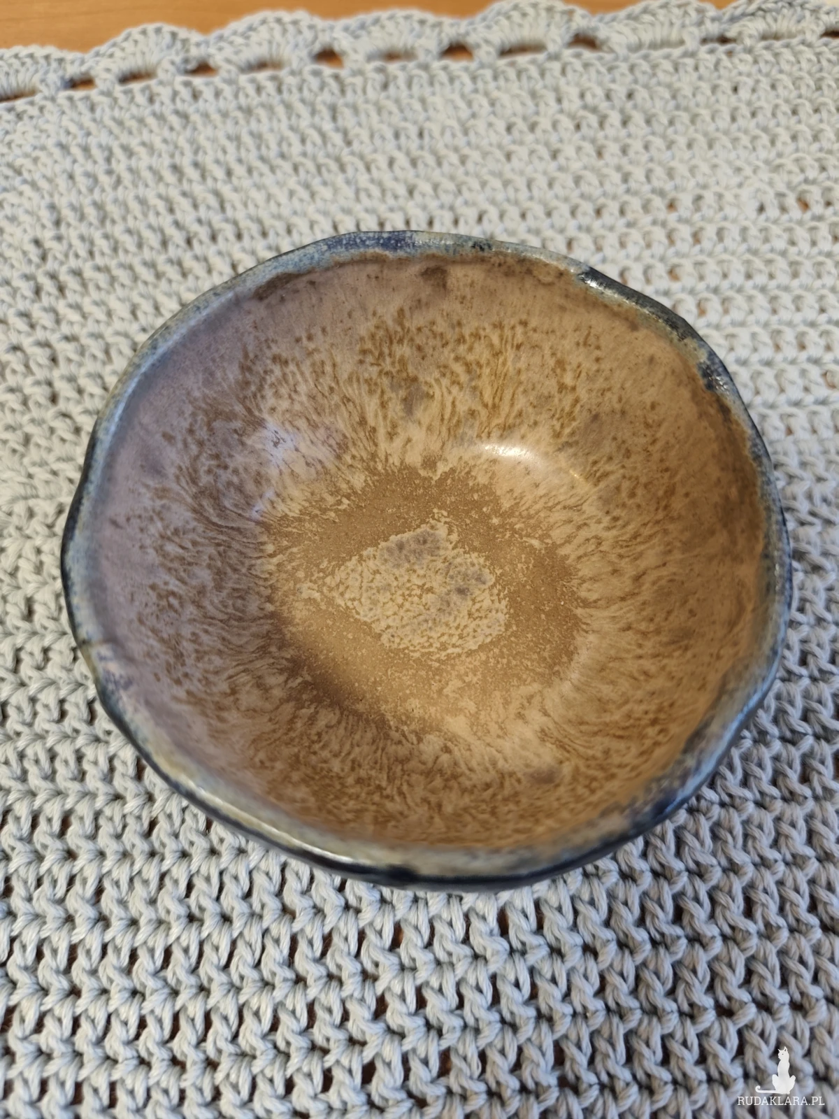 Miseczka ceramiczna ręcznie wykonana, szkliwiona i dwukrotnie wypalana na wysoką temperaturę w piecu ceramicznym. Nadaje się do kontaktu z żywnością. Polecam