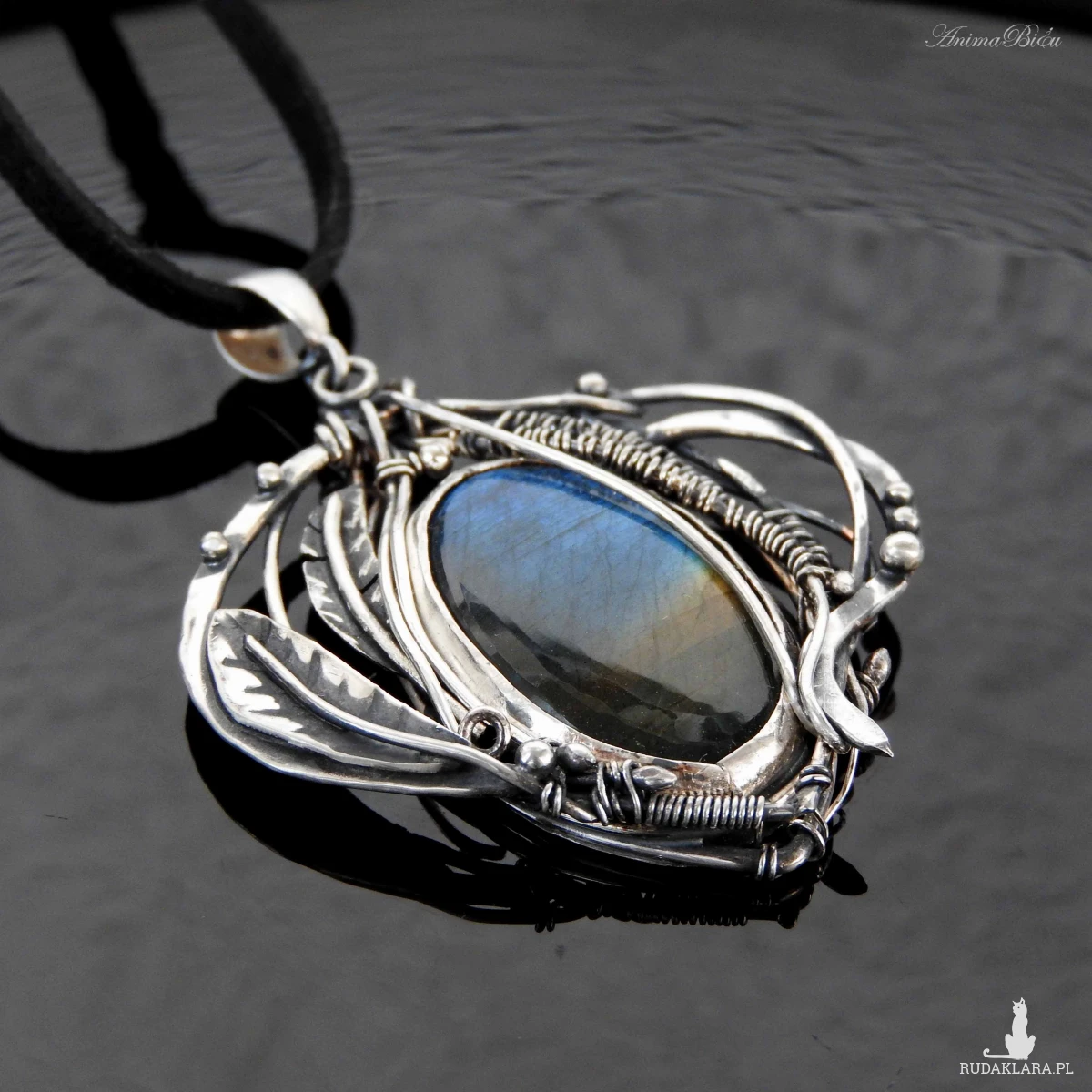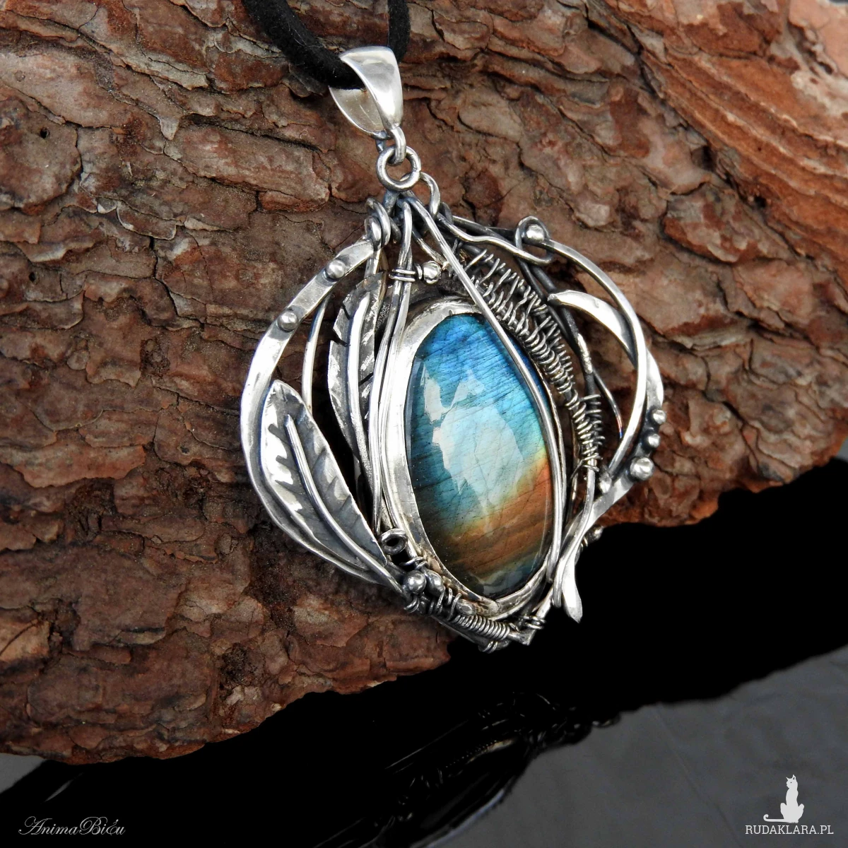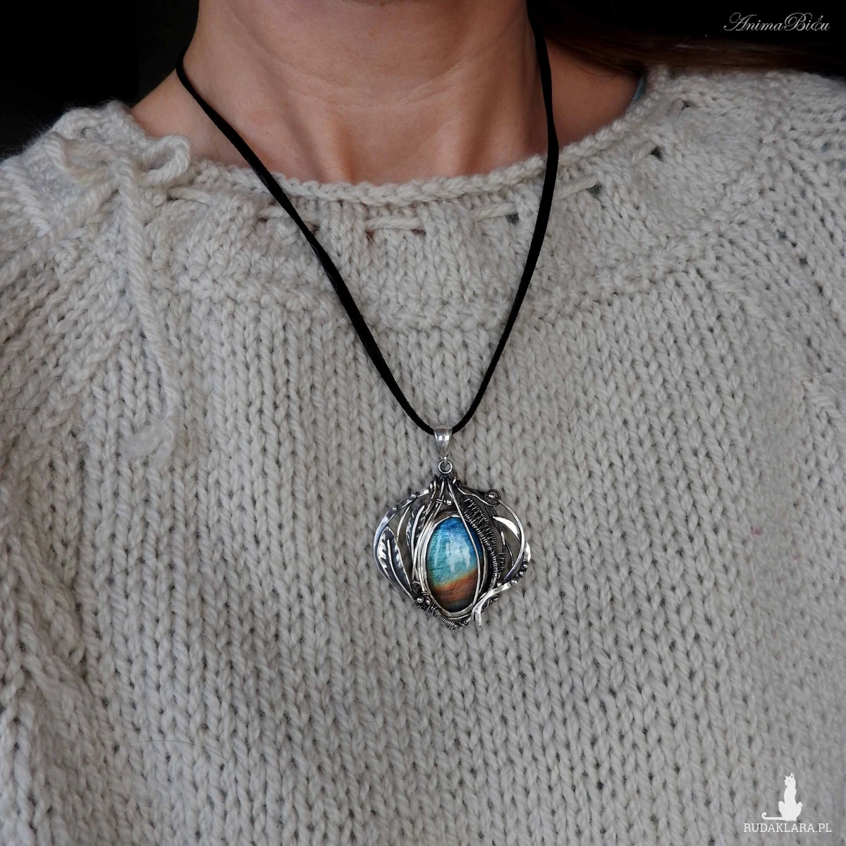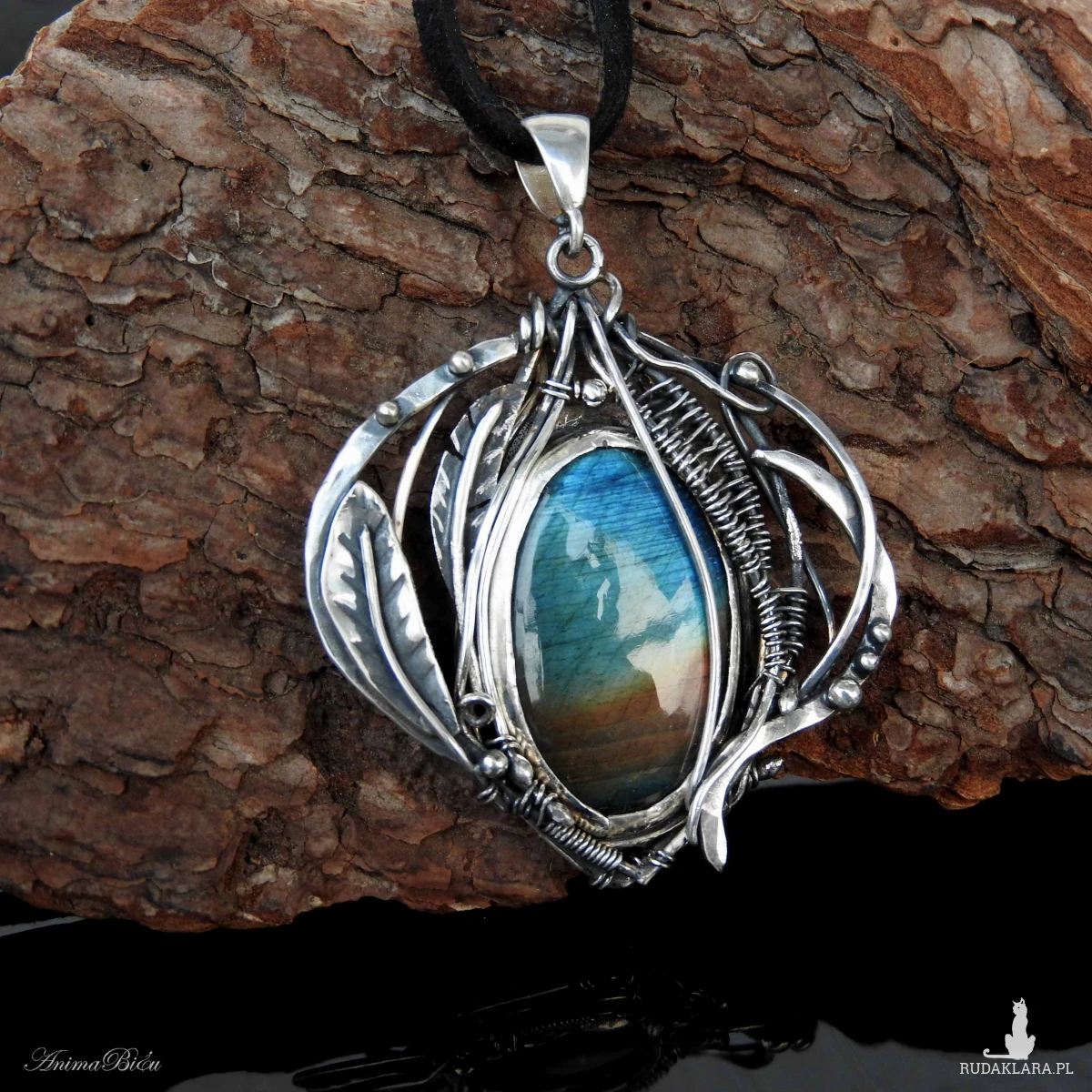 Wisiorek srebrny z labradorytem. Wykonany ręcznie wisiorek