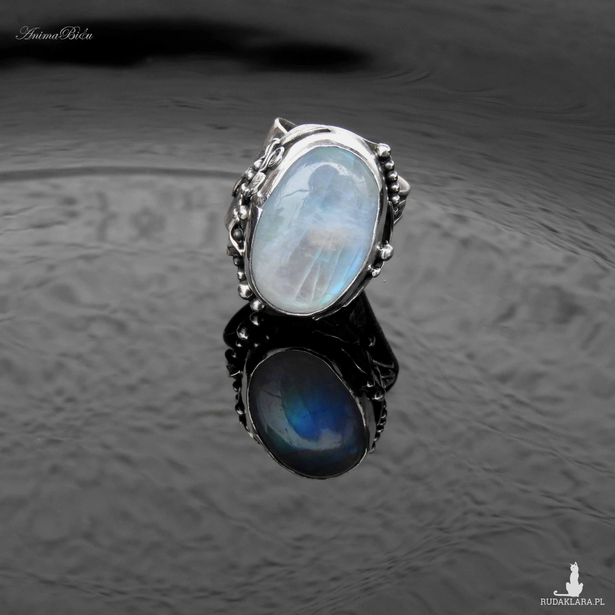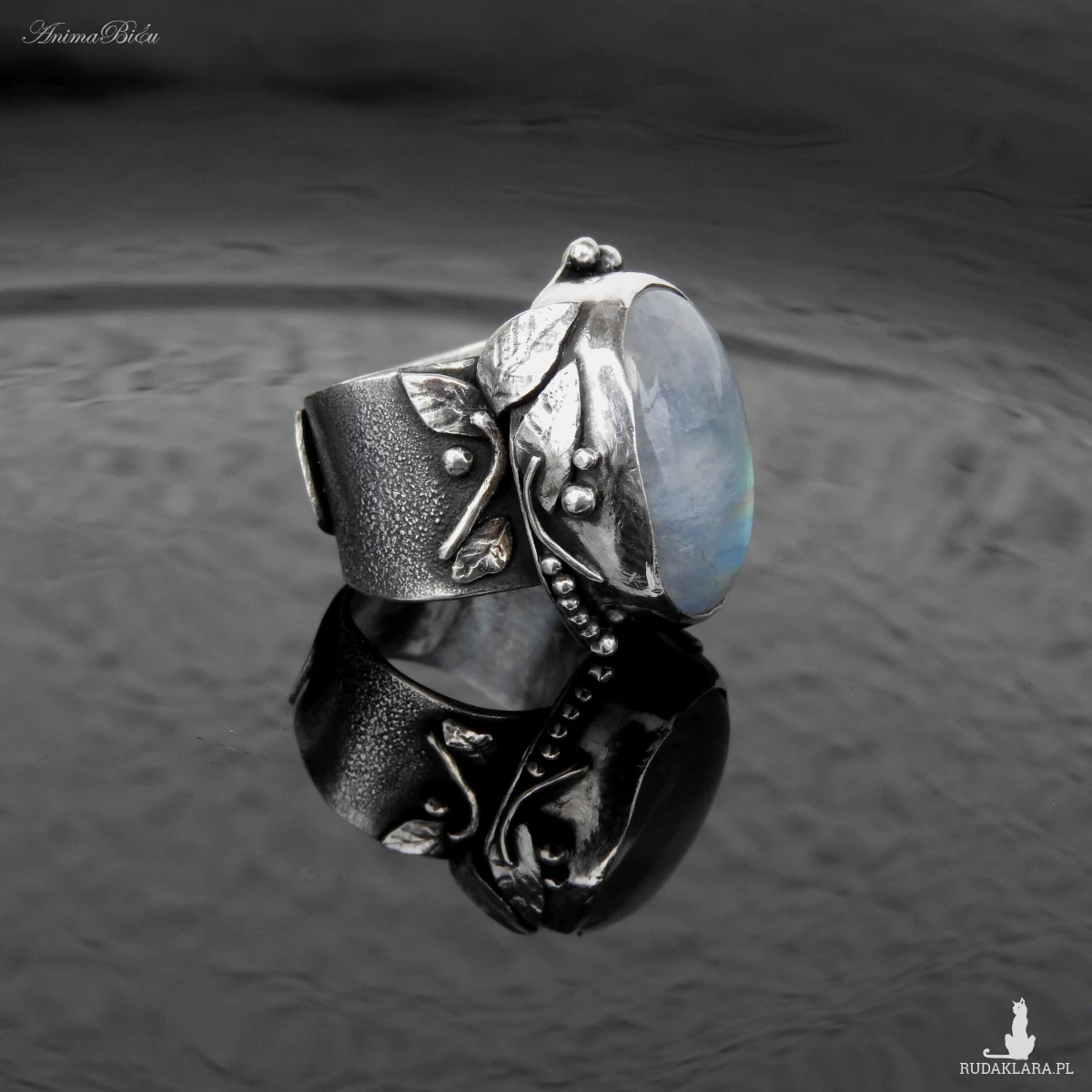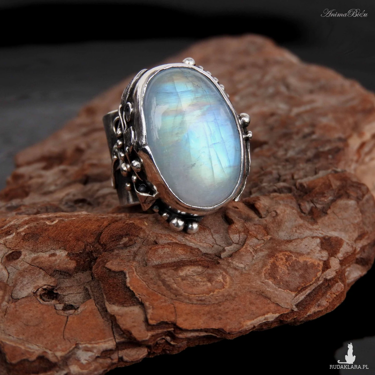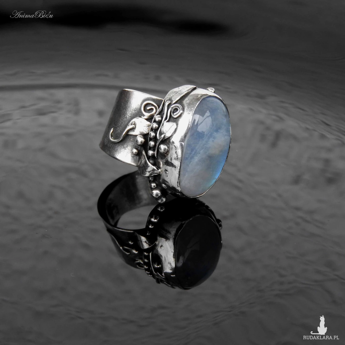 młotkowania ze srebra próby 925 i 999. Wyjątkowo piękny kamień księżycowy
