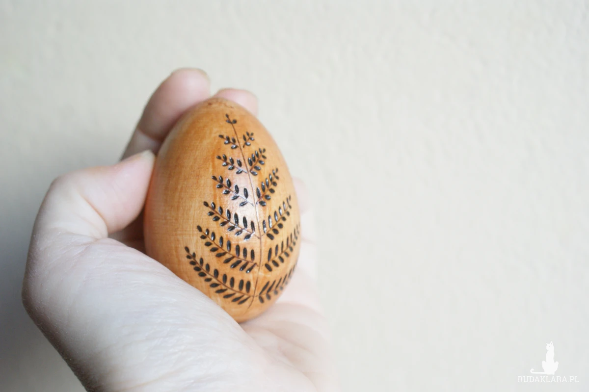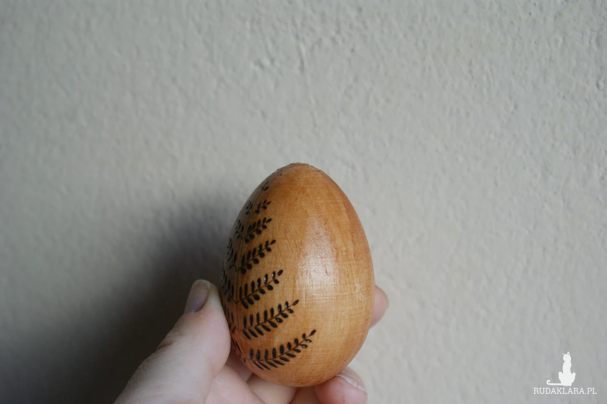 Drewniana pisanka/dekoracja całoroczna. * ręcznie wypalana w technice pirografii * zaimpregnowana nietoksycznym lakierem * bardzo trwała * gotowa do wysyłki Wymiary: wysokość - ok. 6 cm - wielkość jajka kurzego.