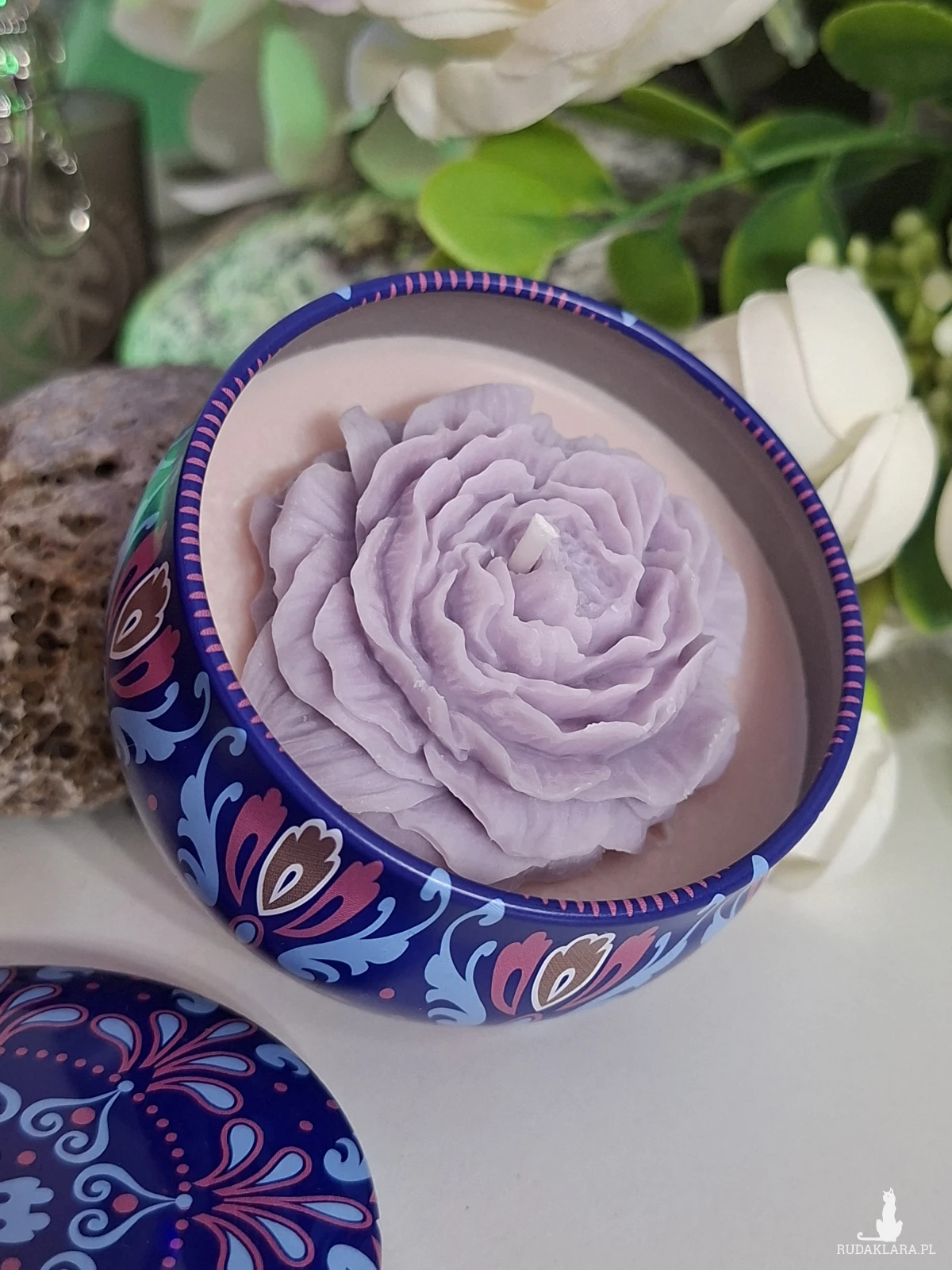 Świeca sojowa w pojemniku w stylu orientalnym.