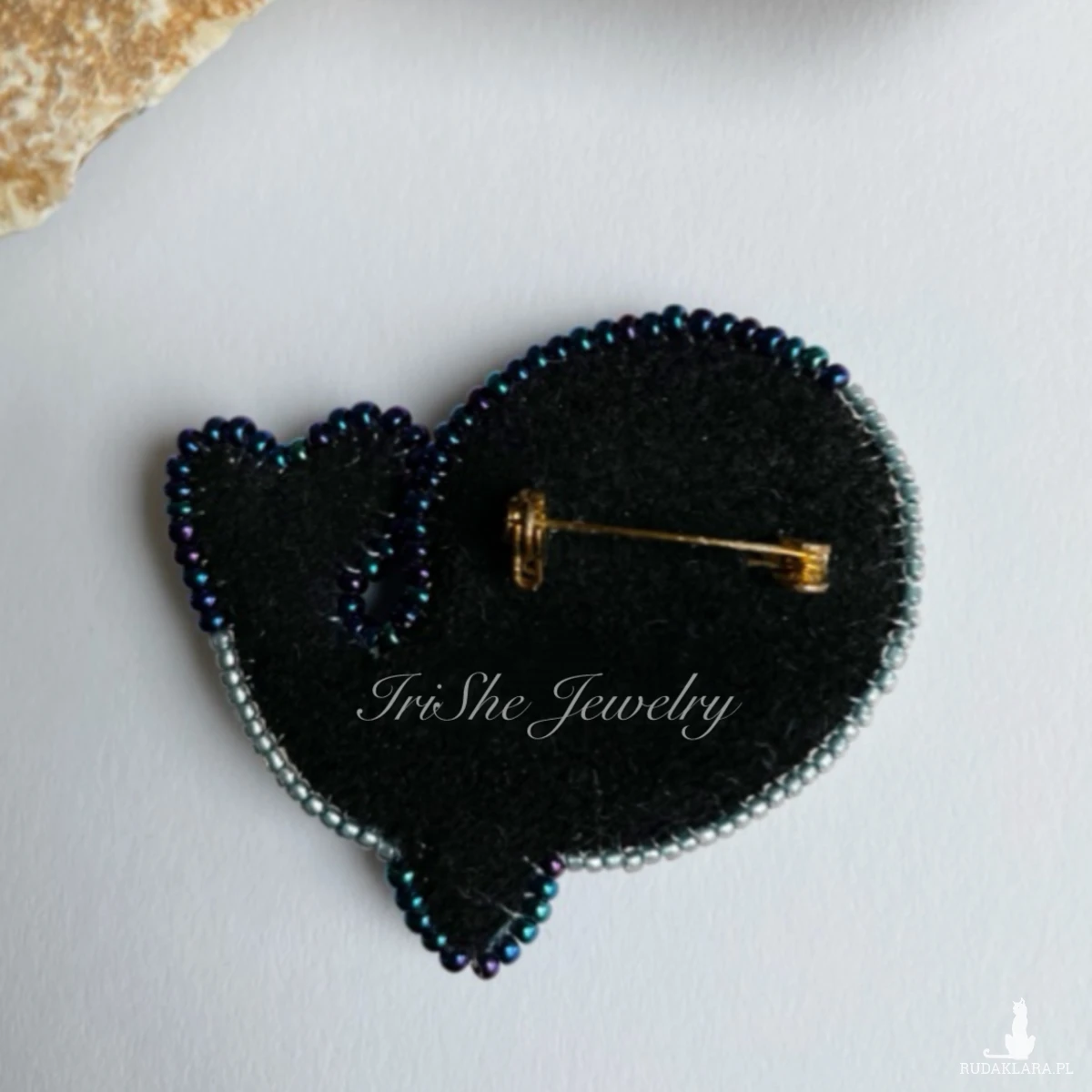 Z tyłu broszka wykończona czarnym zamszem.