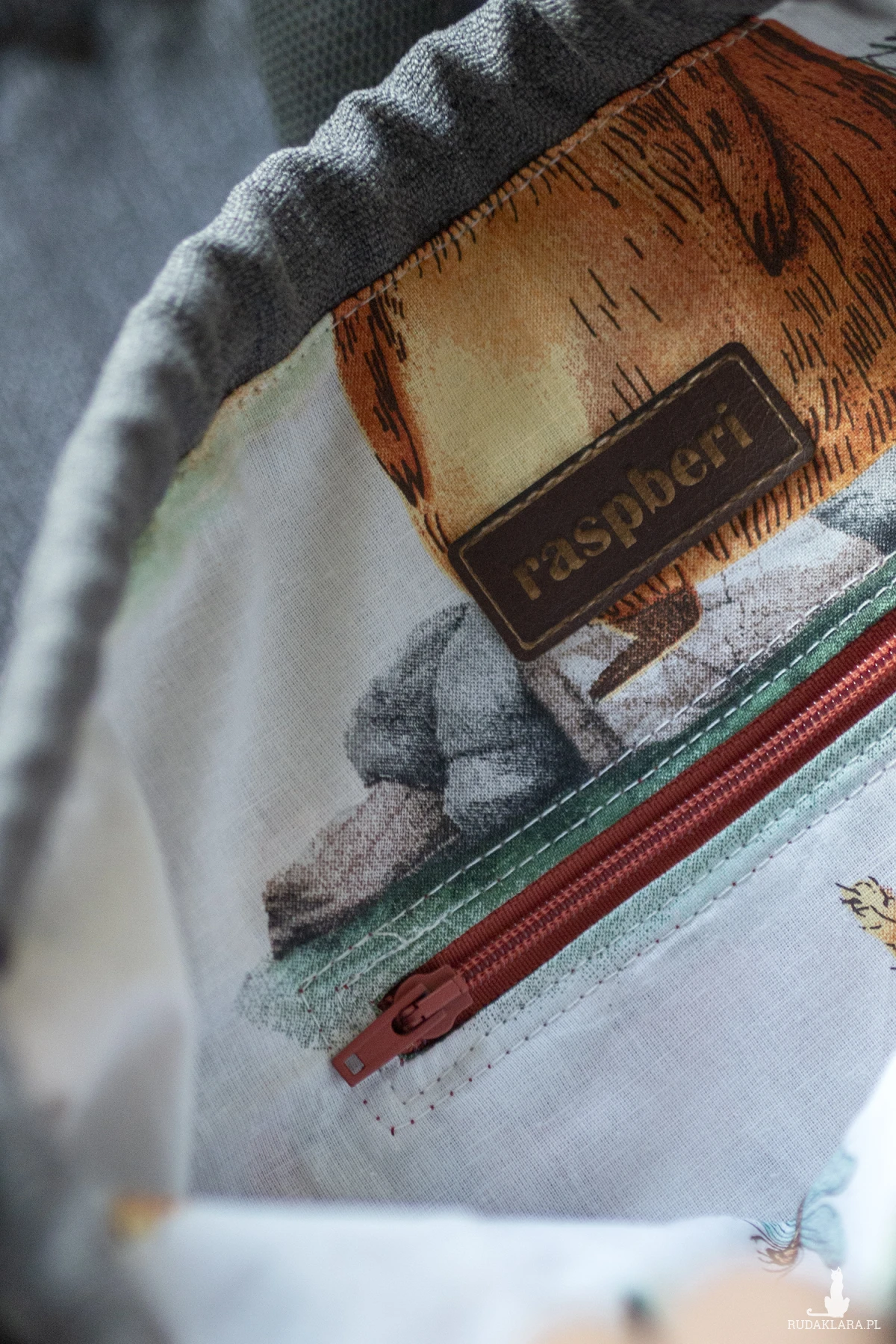 W środku mała kieszonka. Wielkość ok 32x39cm.