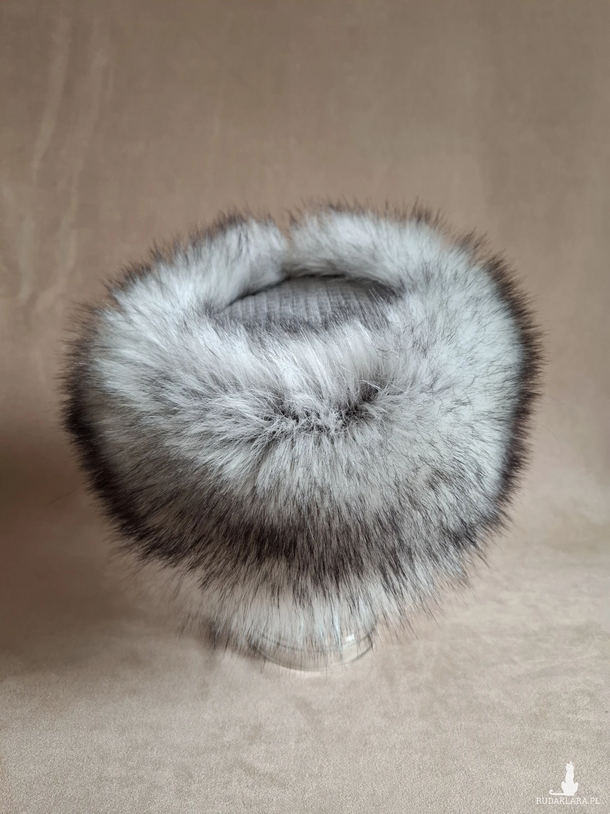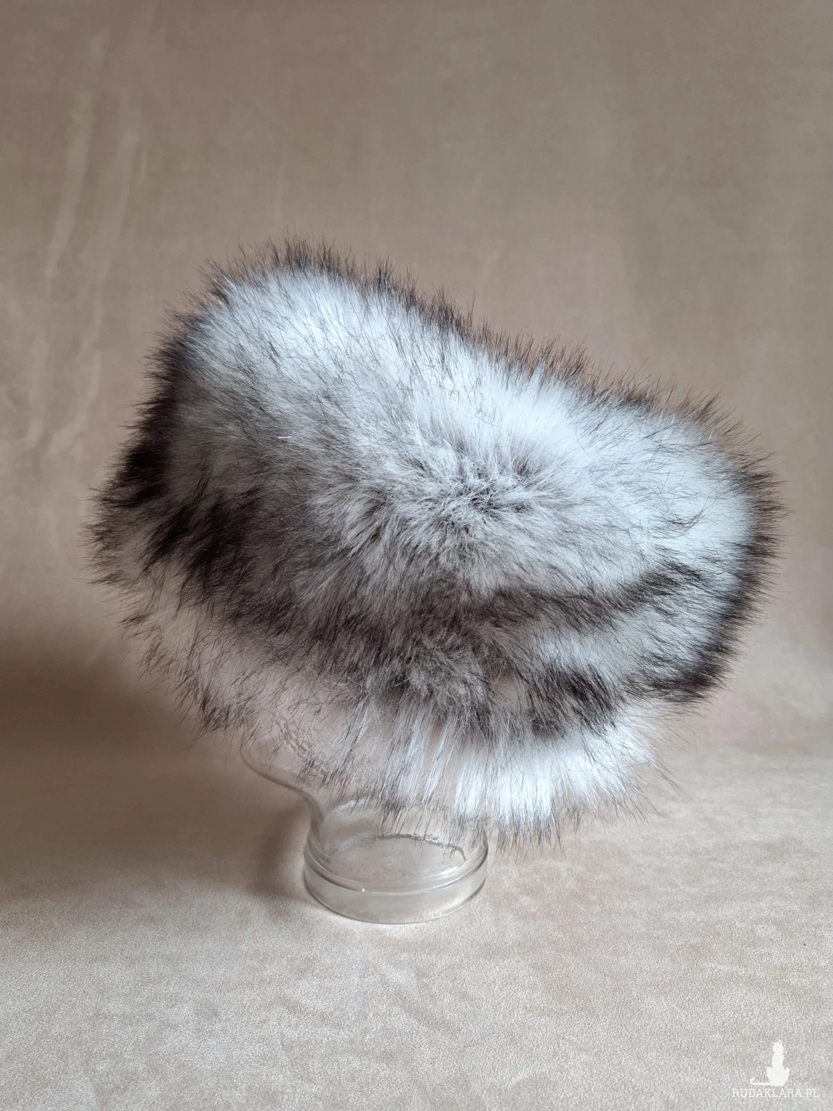 Stylowy futrzany toczek wykonany z gęstego, miękkiego i puszystego futerka.