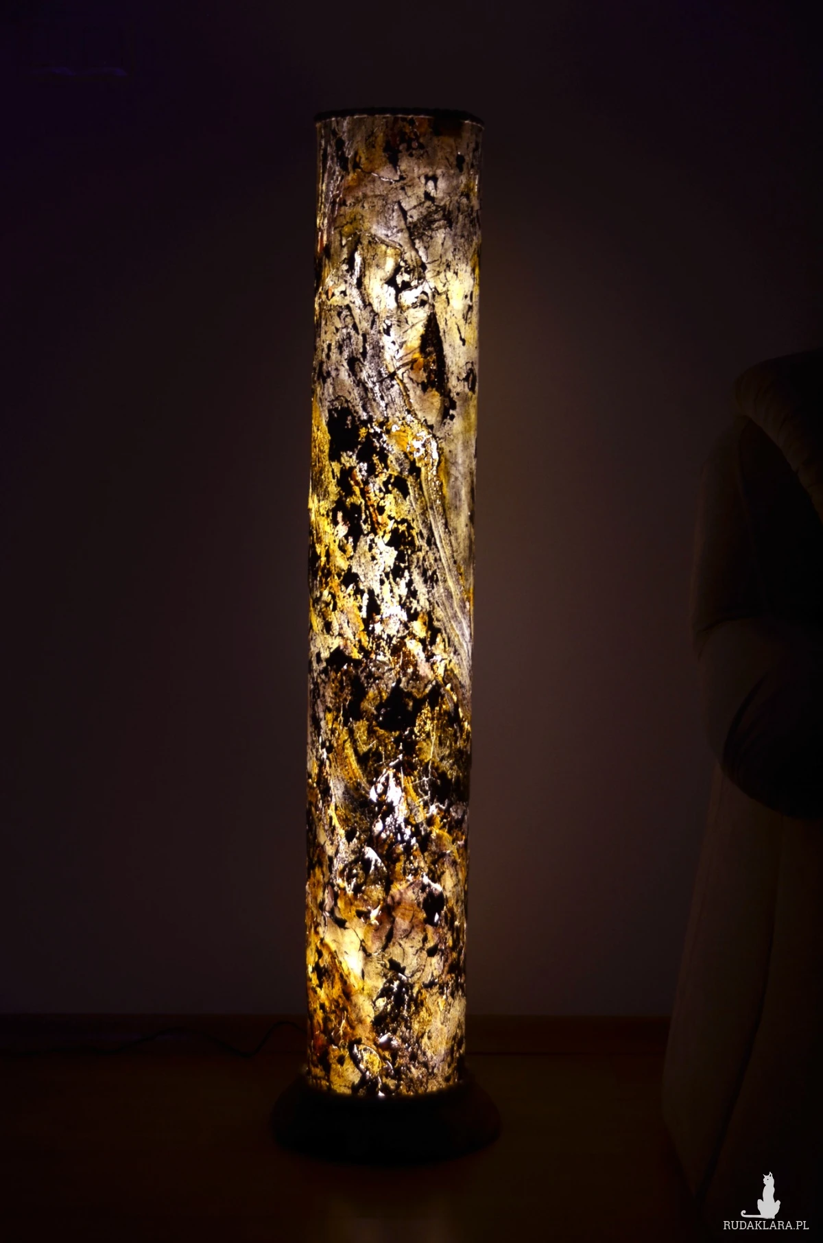 Sprzedam kamienną lampę.Wykonana z forniru kamiennego-różne odmiany kamienia naturalnego na warstwie żywicy.Wysokość 120 cm,oświetlenie led z pilotem(ściemnianie,rozjaśnianie itp).Ciężka i konkretna.Zainteresowanym osobom chętnie doślę więcej zdjęć i krótki filmik lampki..Pozdrawiam.