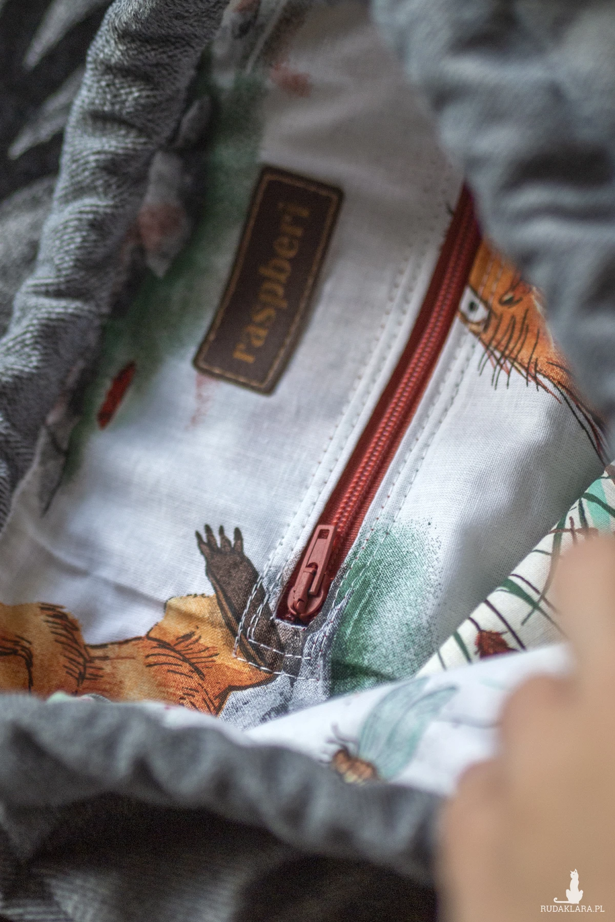 W środku mała kieszonka. Wielkość ok 32x39cm.