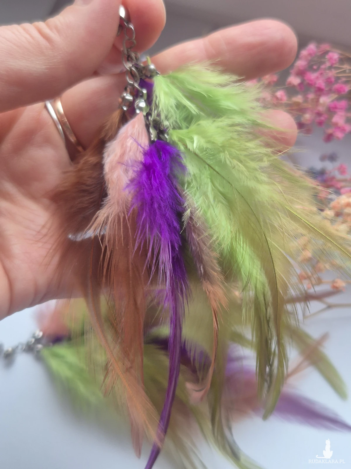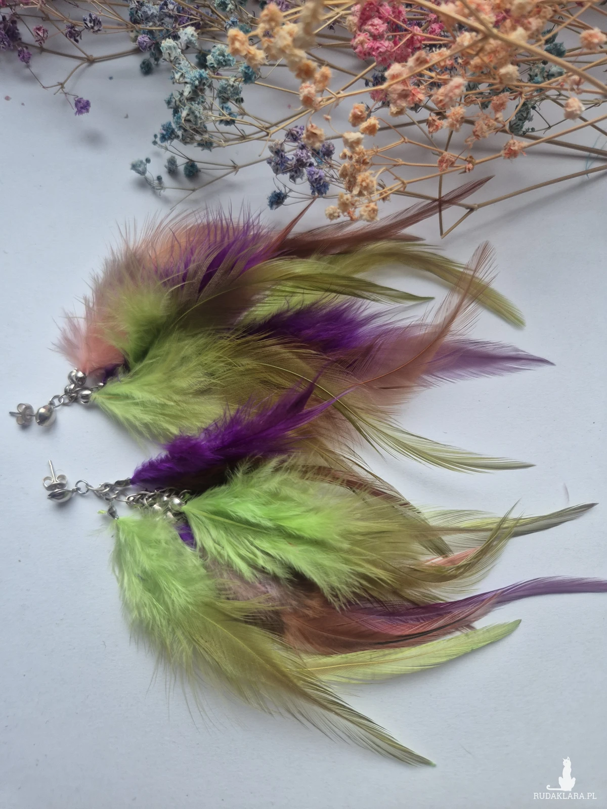 Kolczyki kolorowe energetyczne  pióra duże  wykonane w pojedynczym egzemplarzu rękodzieło