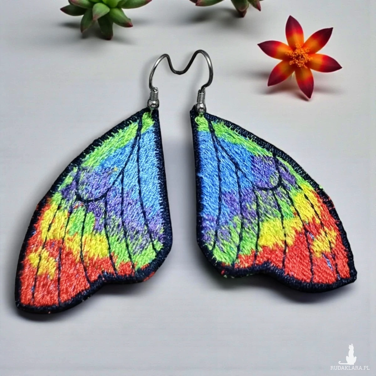 Haftowane kolczyki skrzydła motyla są ciekawe i bardzo oryginalne. Kolczyki ciekawych barwach zachwycają kształtem, kolorem i z pewnością spodobają się kobietom ceniącym indywidualność oraz modne i nietuzinkowe stylizacje.