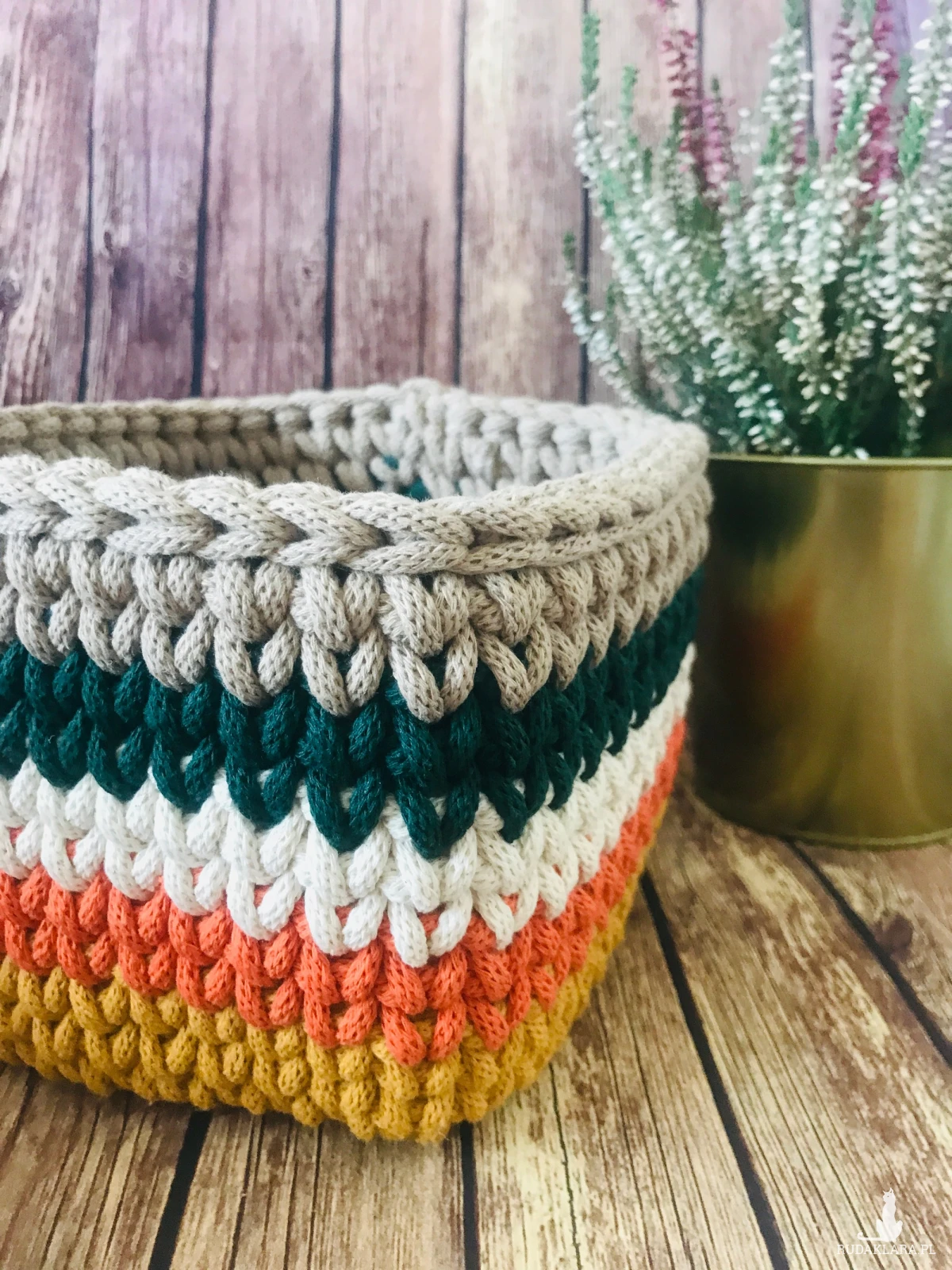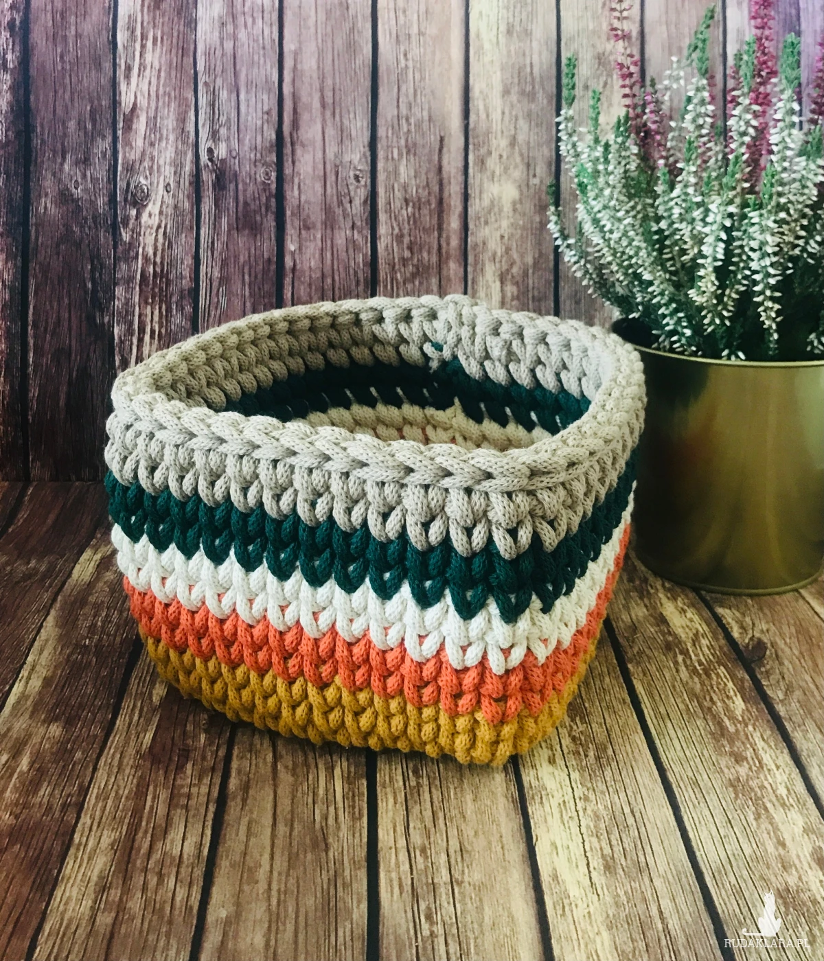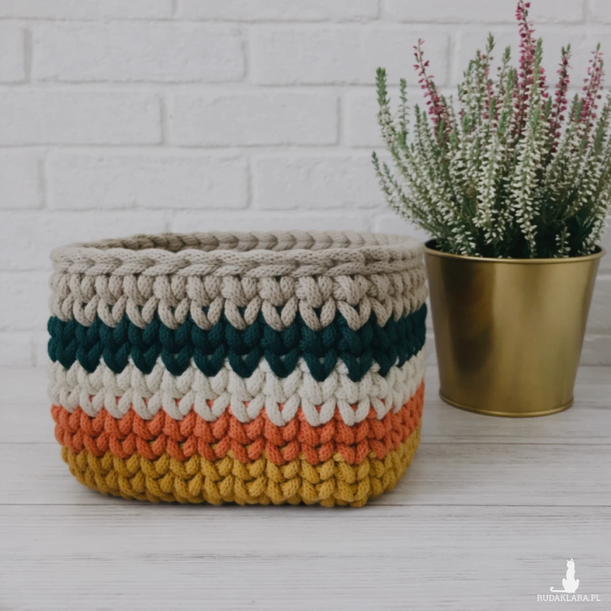 Kwadratowy koszyk ze sznurka bawełnianego o średnicy 5mm w kolorowe pasy