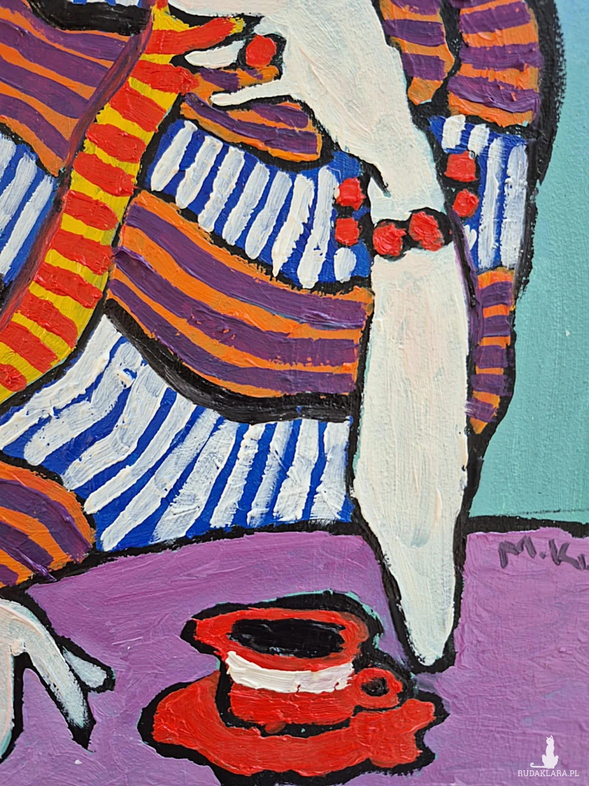 Dym nie wznosi się ku górze — on zawisa. Jak myśl, której nie da się dokończyć. Jak zdanie urwane w pół drogi. Na stole czeka filiżanka kawy, czerwona jak małe serce dnia powszedniego. Jeszcze ciepła. Jeszcze potrzebna. Ale na razie nietknięta.