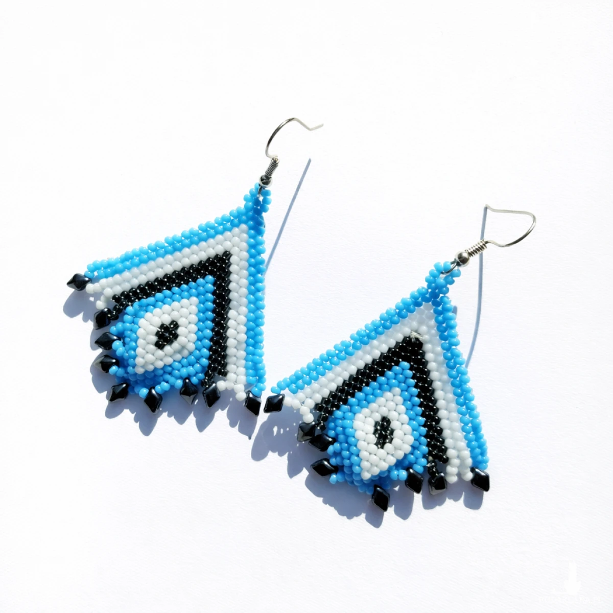 Kolczyki Tres to ręcznie wykonana biżuteria z drobnych koralików, która zachwyca harmonijnym połączeniem bieli, turkusowego błękitu oraz metalicznego hematytu. Geometryczna forma inspirowana wzorami etnicznymi nadaje im wyjątkowy charakter i sprawia, że stanowią wyrazisty element stylizacji.