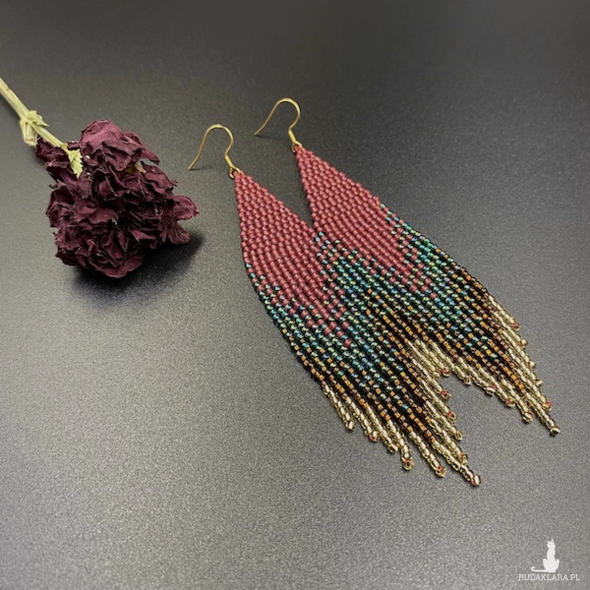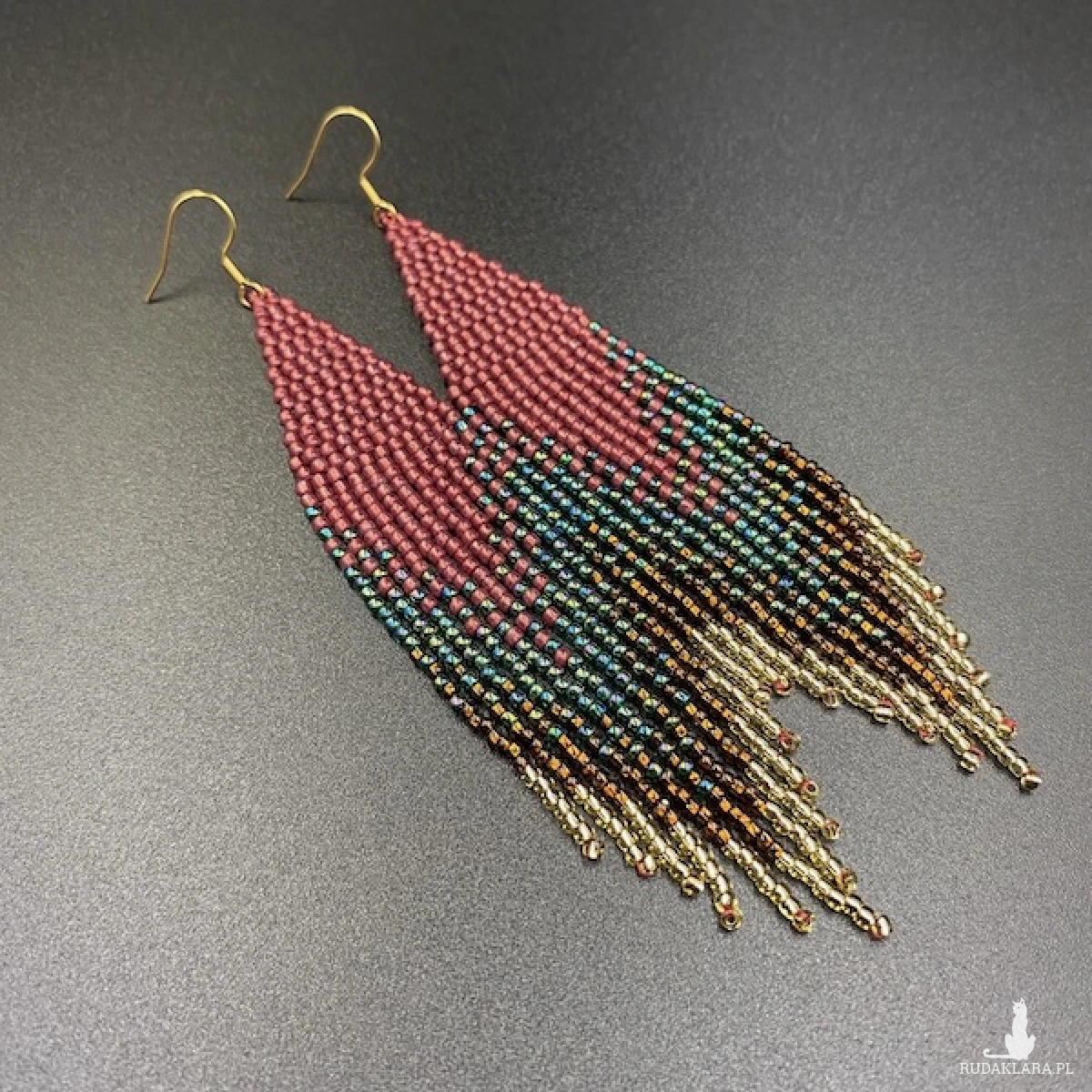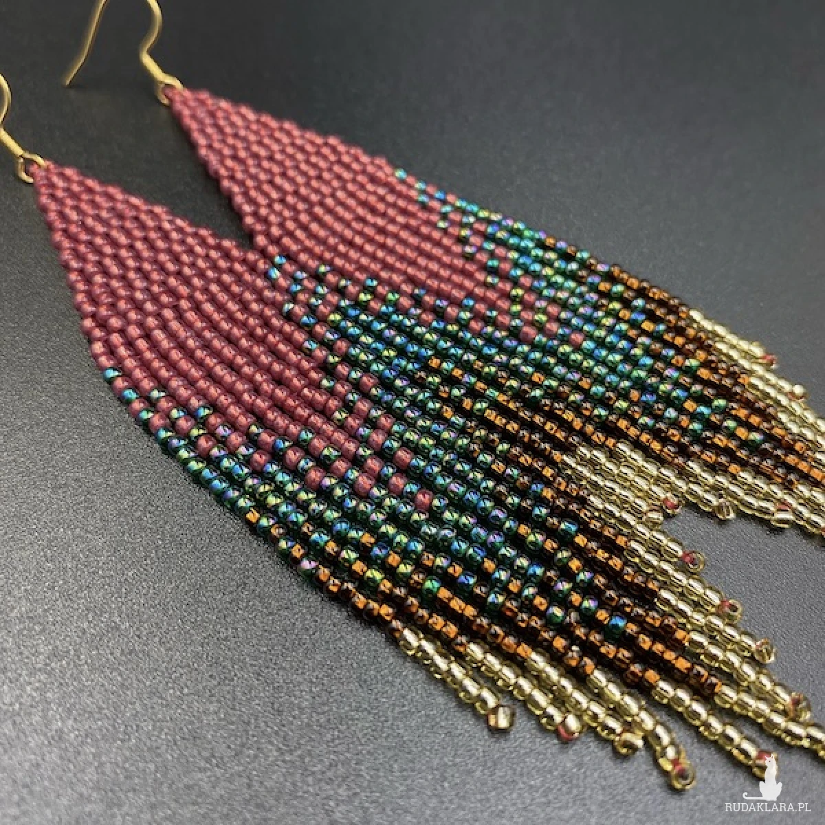 Etniczne kolczyki zostały w 100% utkane ręcznie z koralików TOHO 11. Każdą pracę wykonuję bardzo starannie.