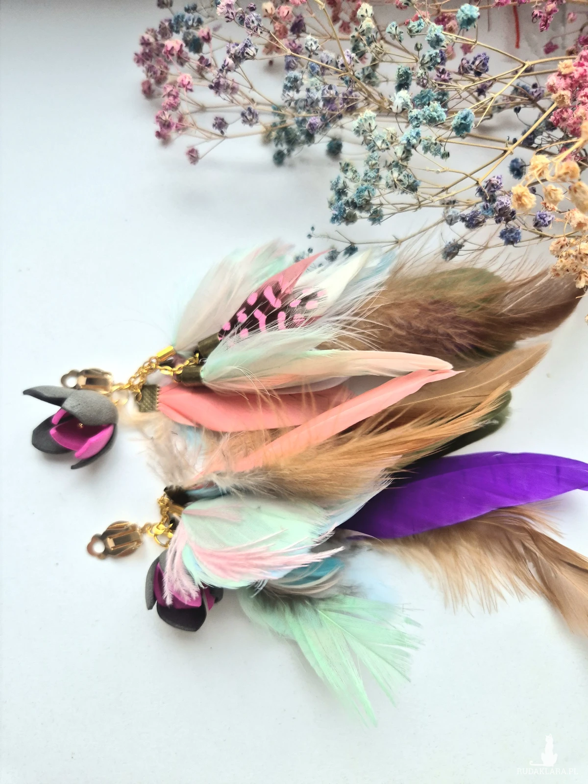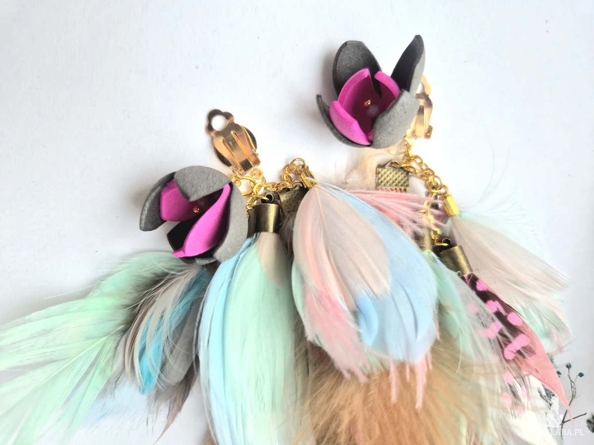 Klipsy pióra wykonane w pojedynczym egzemplarzu piękne polecam