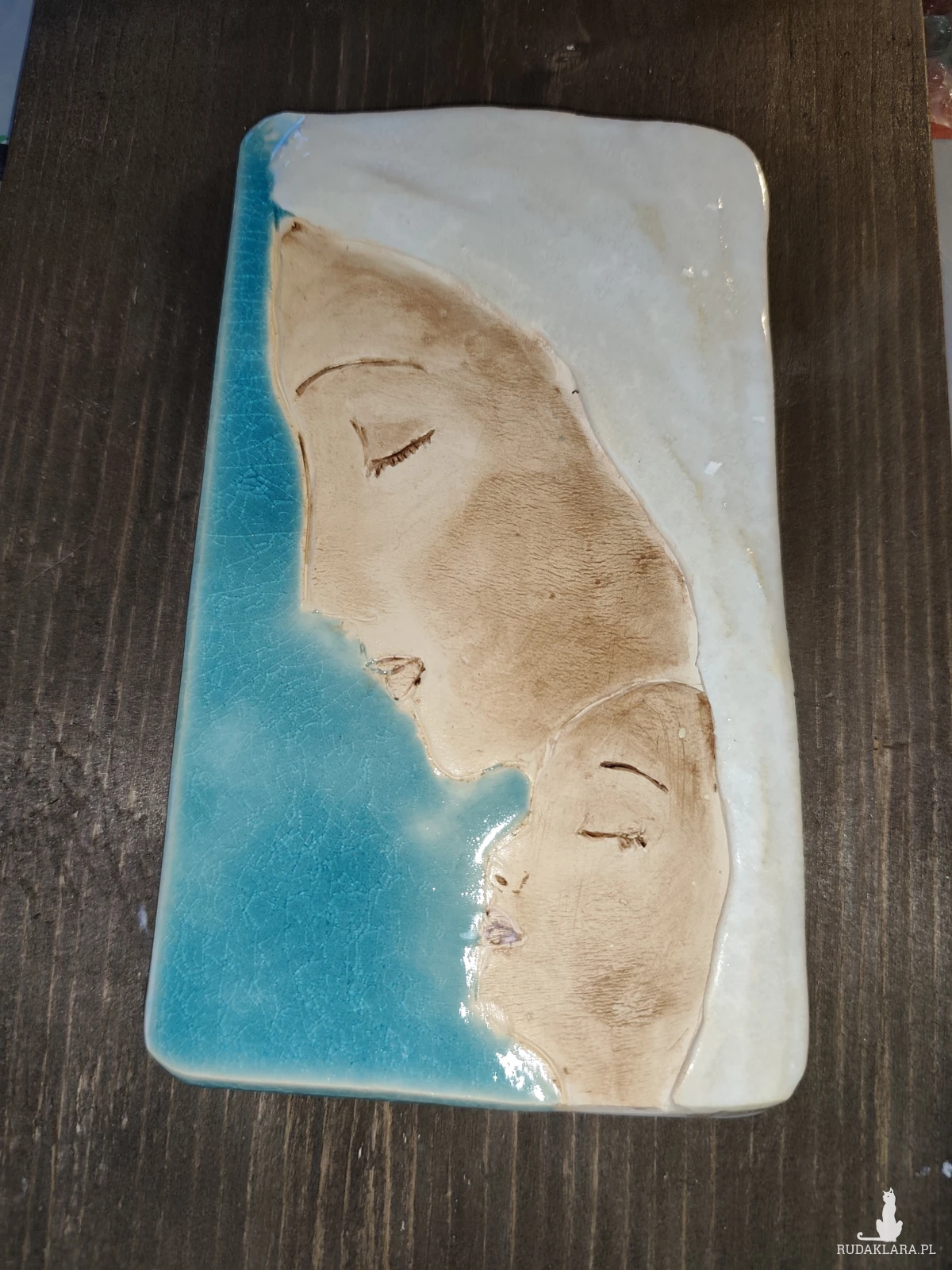 Obrazek ceramiczny wykonany z jasnej gliny, szkliwiony i dwukrotnie wypalany w piecu ceramicznym. polecam