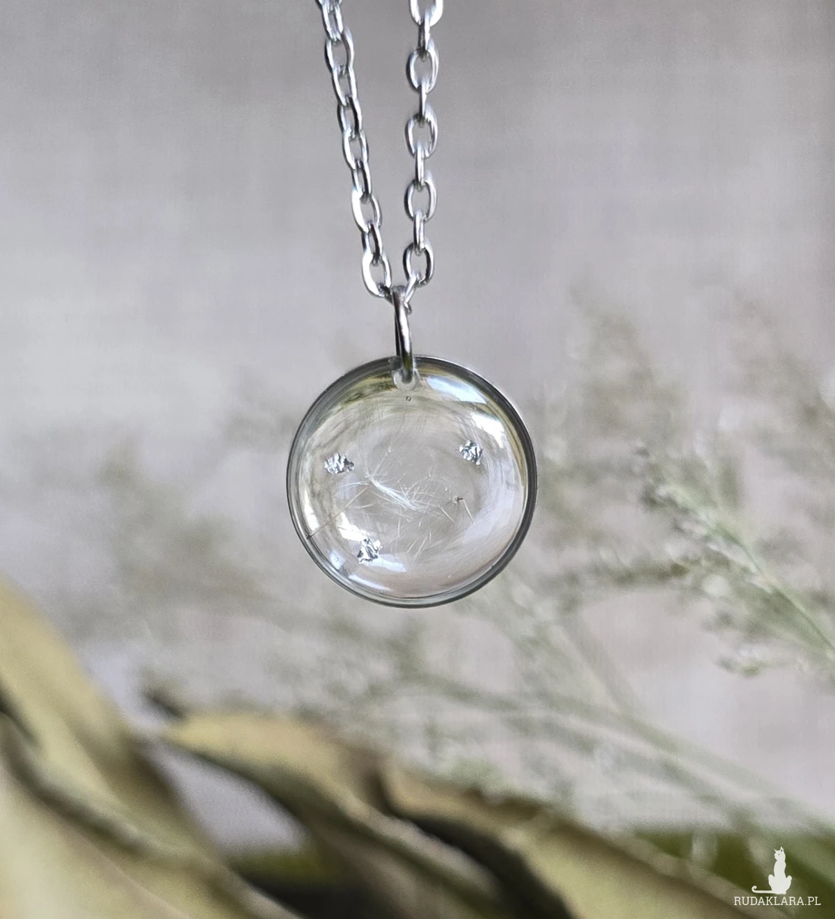 Dmuchawiec Wieczne kwiaty bukiet kwiatowy łąka srebrna zawieszka srebrny wisiorek kwiat naszyjnik żywica z żywicy kwiaty