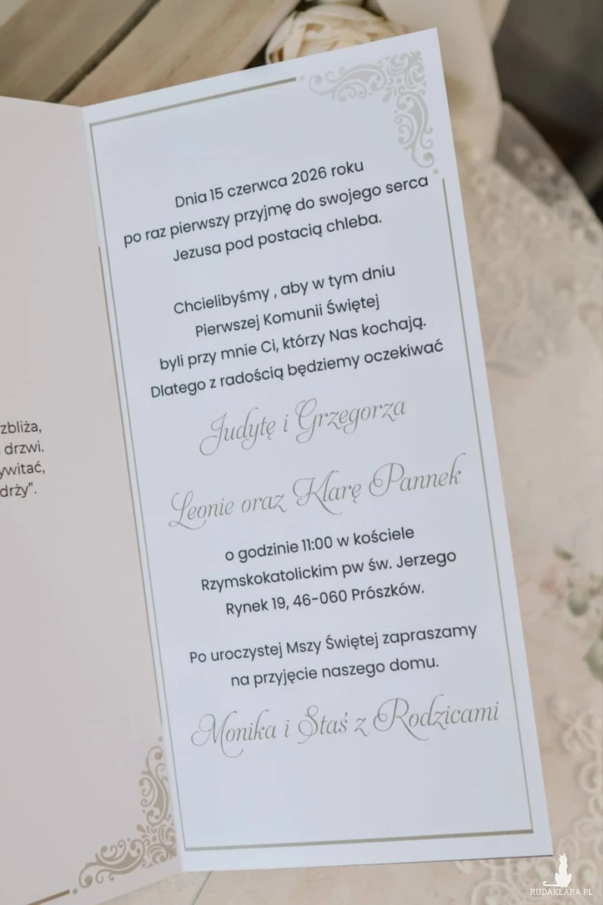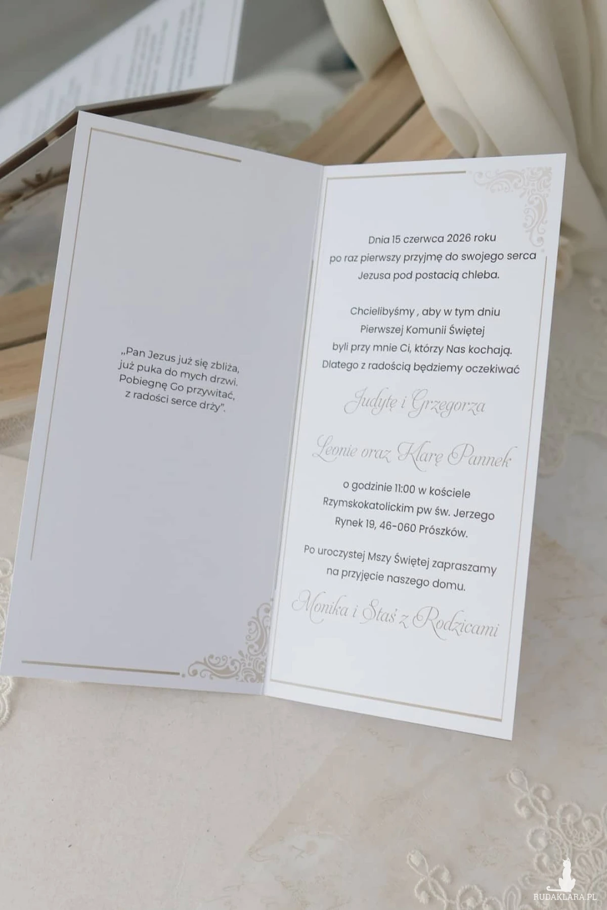 Wymiar zaproszenia: 10 × 21 cm.