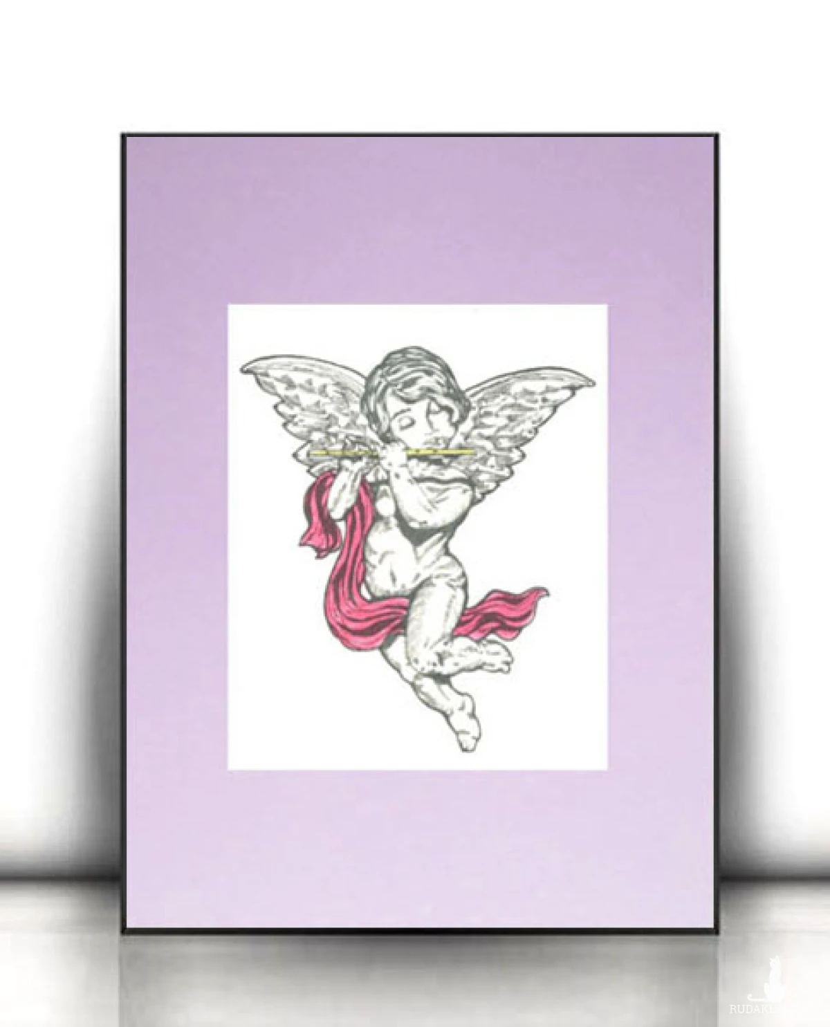 Nowy plakat w stylu retro, grafika z amorkiem na fioletowym kartoniku 21 x 30 cm. Poster do samodzielnej oprawy. Obrazek wystarczy tylko umieścić w antyramie lub ramce A4.