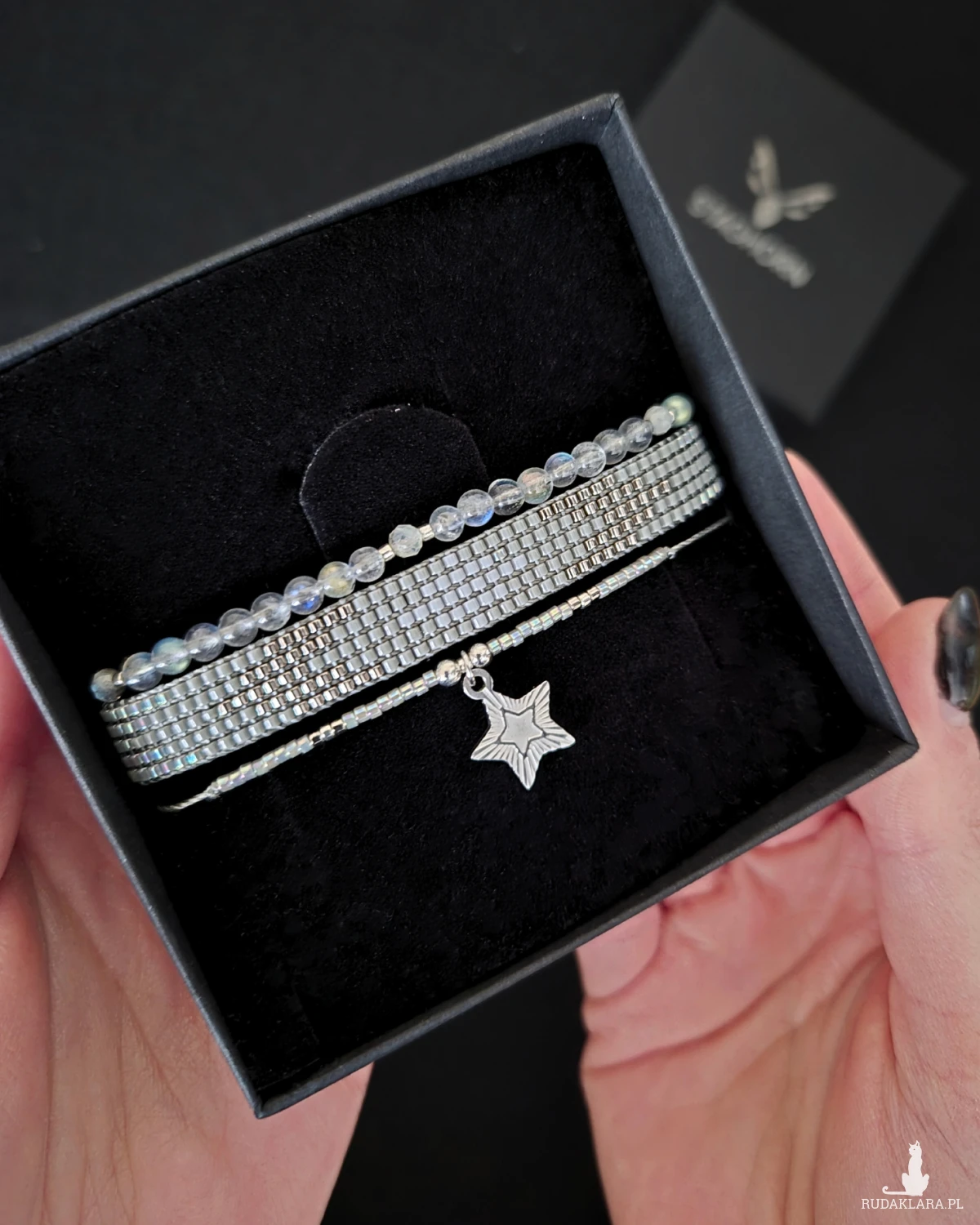 „Lunar Grey” to zestaw dla osób ceniących minimalizm, harmonię i subtelne detale z ukrytym znaczeniem. Idealny jako codzienna biżuteria lub symboliczny prezent.