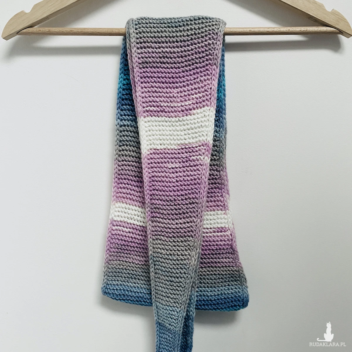 Szalik wykonałam ręcznie na drutach z wysokiej jakości, miękkiej włóczki akrylowej, która zapewnia wygodę noszenia przez cały dzień.