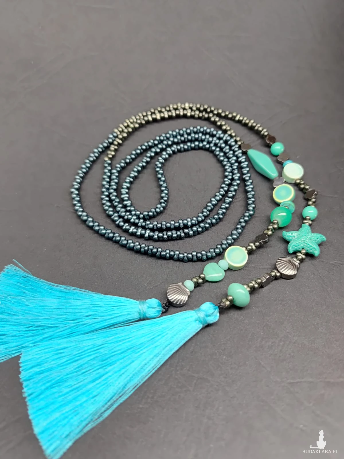 Naszyjnik Długi Sznur Turkusowa Rozgwiazda Z Chwostami