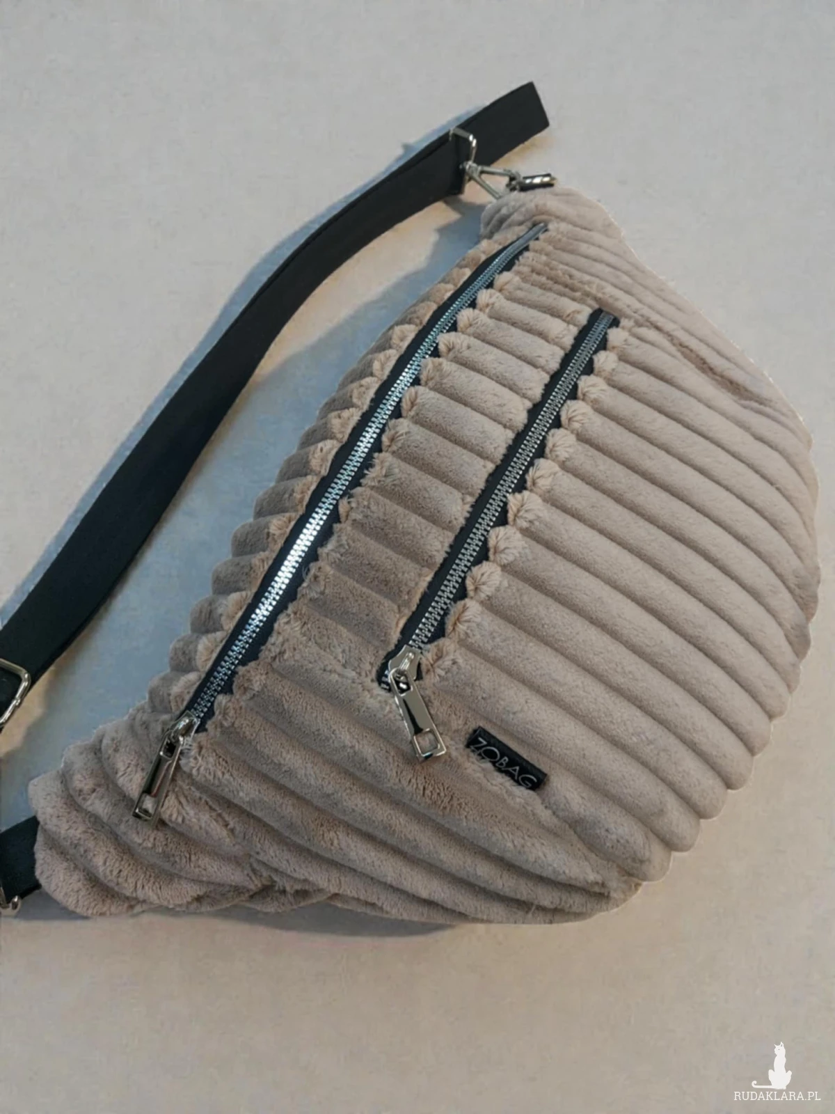 Jest to duża nerka do noszenia przez ramię, bardzo pojemna. Posiada na przodzie kieszeń na zamek na telefon, klucze. W środku jedna duża komora z jedną kieszenią na zamek.