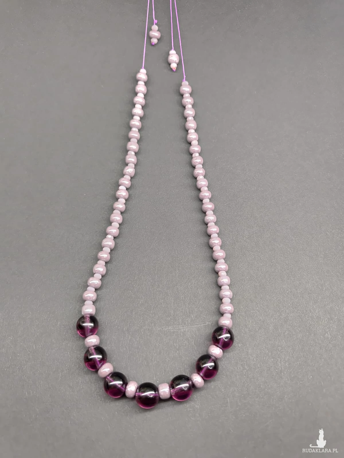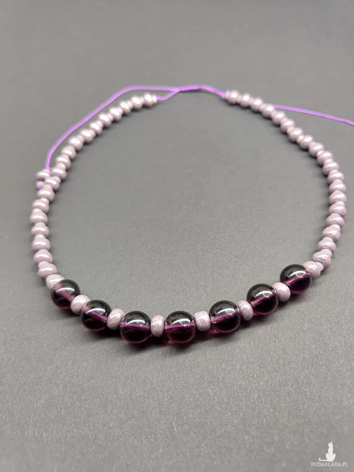 naszyjnik w fioletowym kolorze. Na sznurku syntetycznym fioletowym z