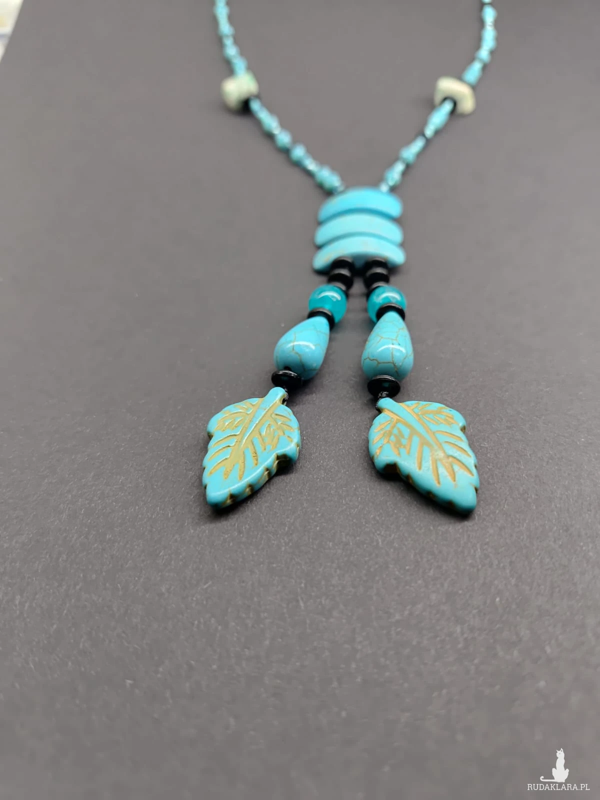 howlit w kolorze turkusowym, bryłki zielonych kamieni, dł 40 cm plus 10