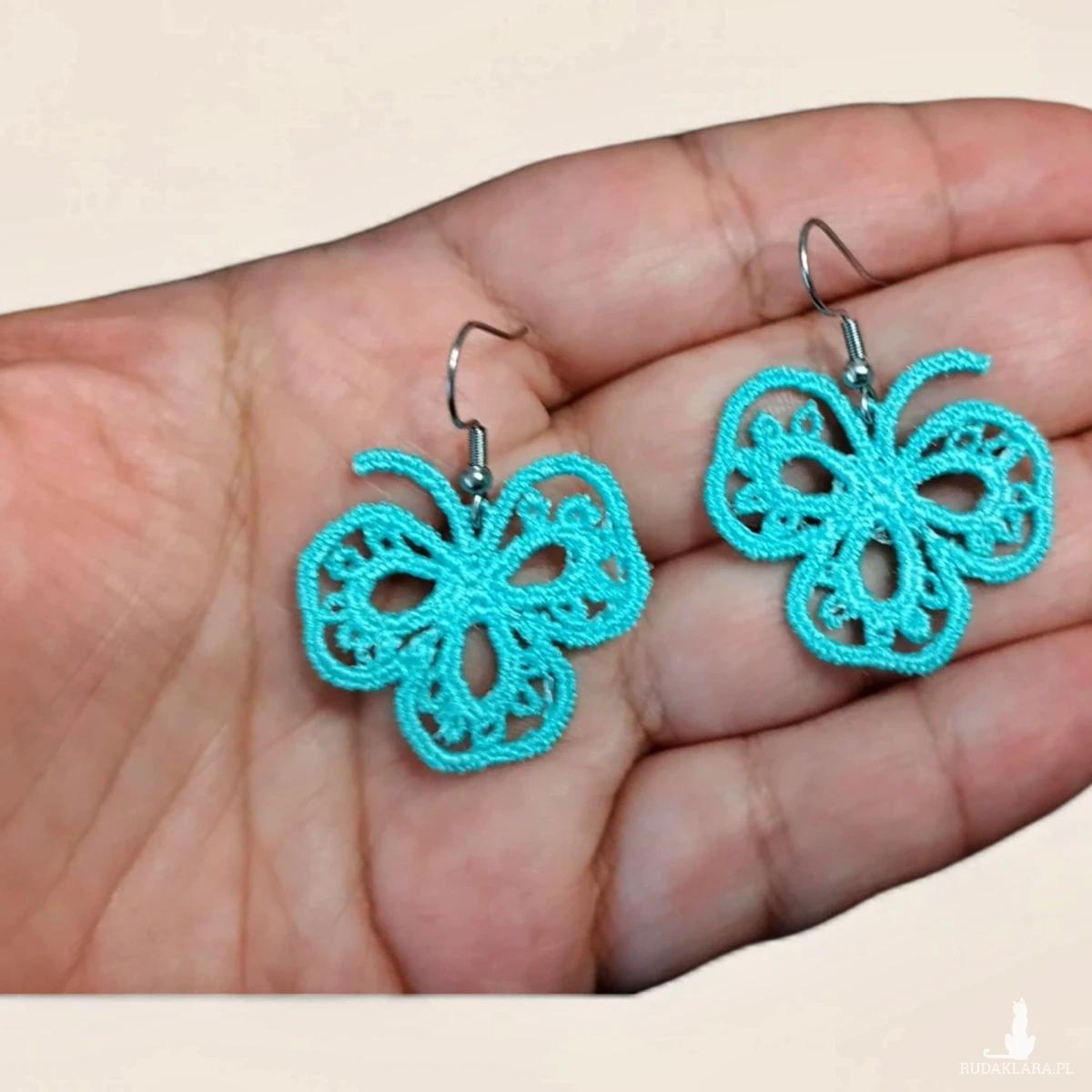 Kolczyki są haftowane (haft maszynowy). Kolczyki są sztywne w chwycie, ich kształt oraz wygląd nie zmieniają się. Haftowane kolczyki też są lekkie - to ich kolejny atut.