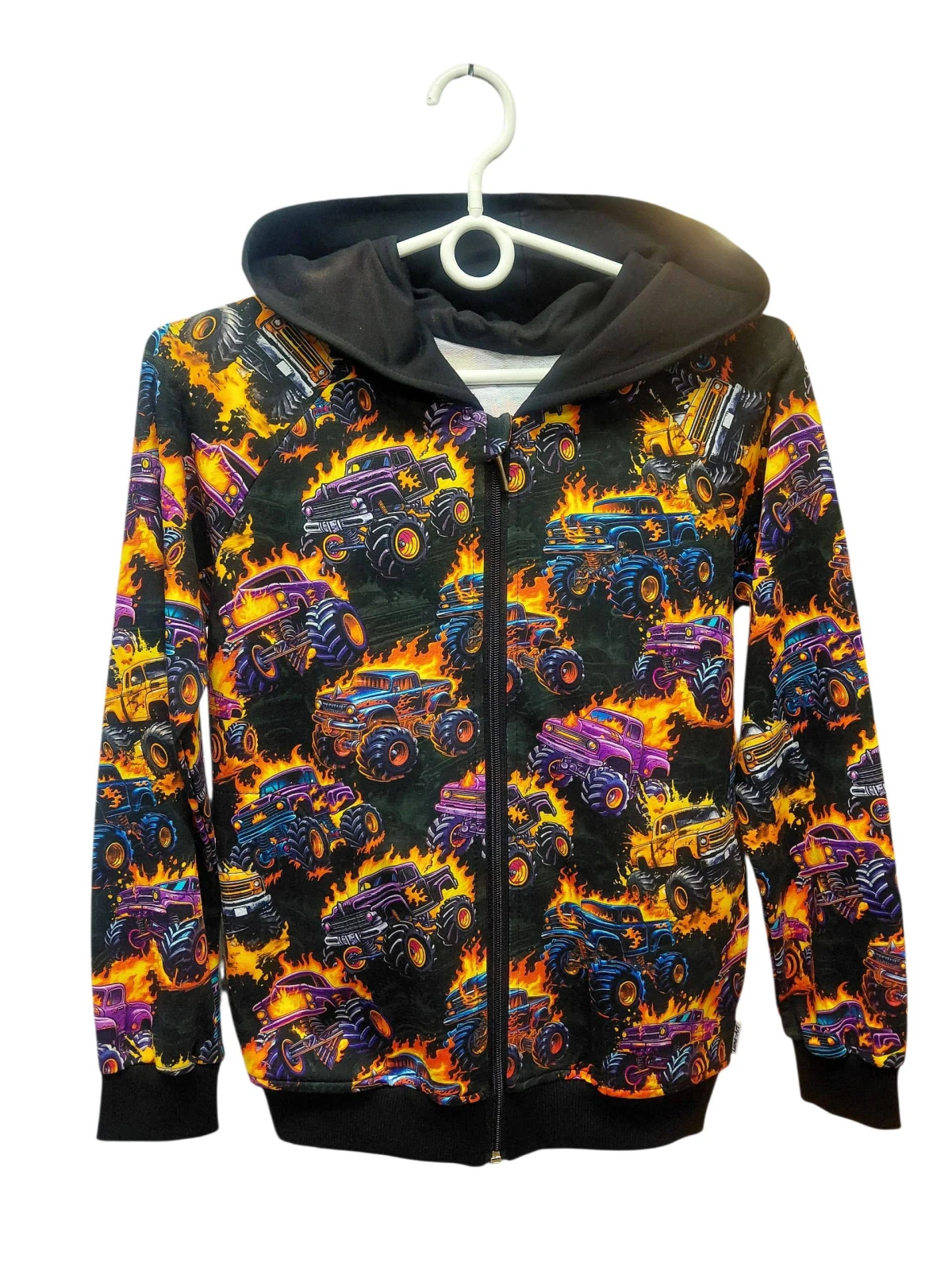 Bluza rozpinana z kapturem, uszyta z dresówki pętelki, wzór cyfrowy.
