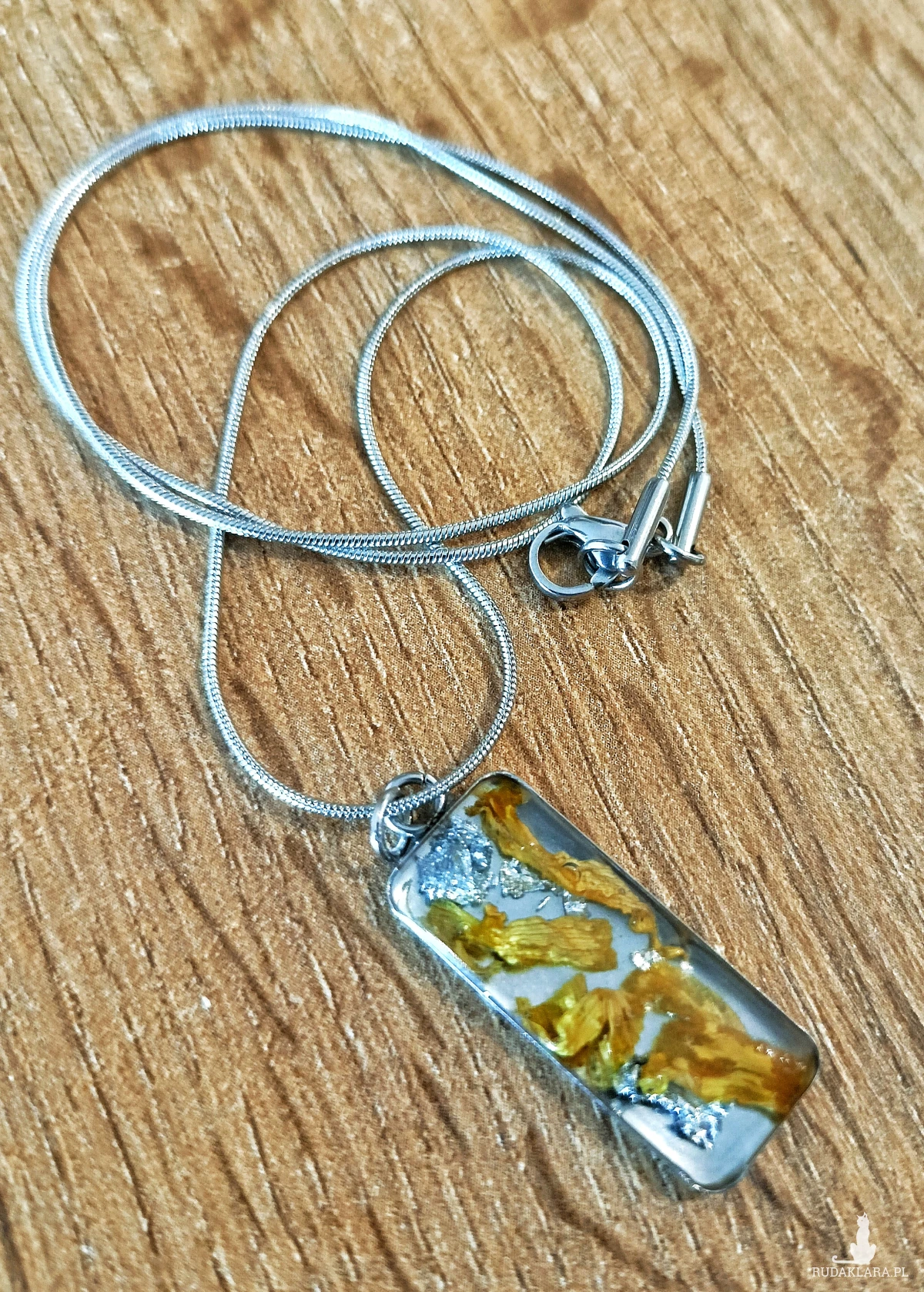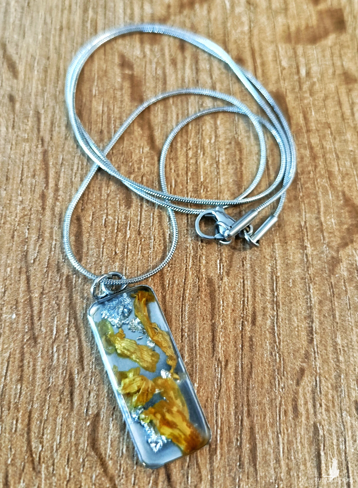 naszyjnik ze słonecznikiem, naszyjnik handmade, biżuteria z żywicy, resin pro jewelry, naszyjnik z kwiatem, biżuteria naturalna, prezent dla niej, naszyjnik stal nierdzewna, biżuteria z suszonymi kwiatami, biżuteria boho, naszyjnik na prezent